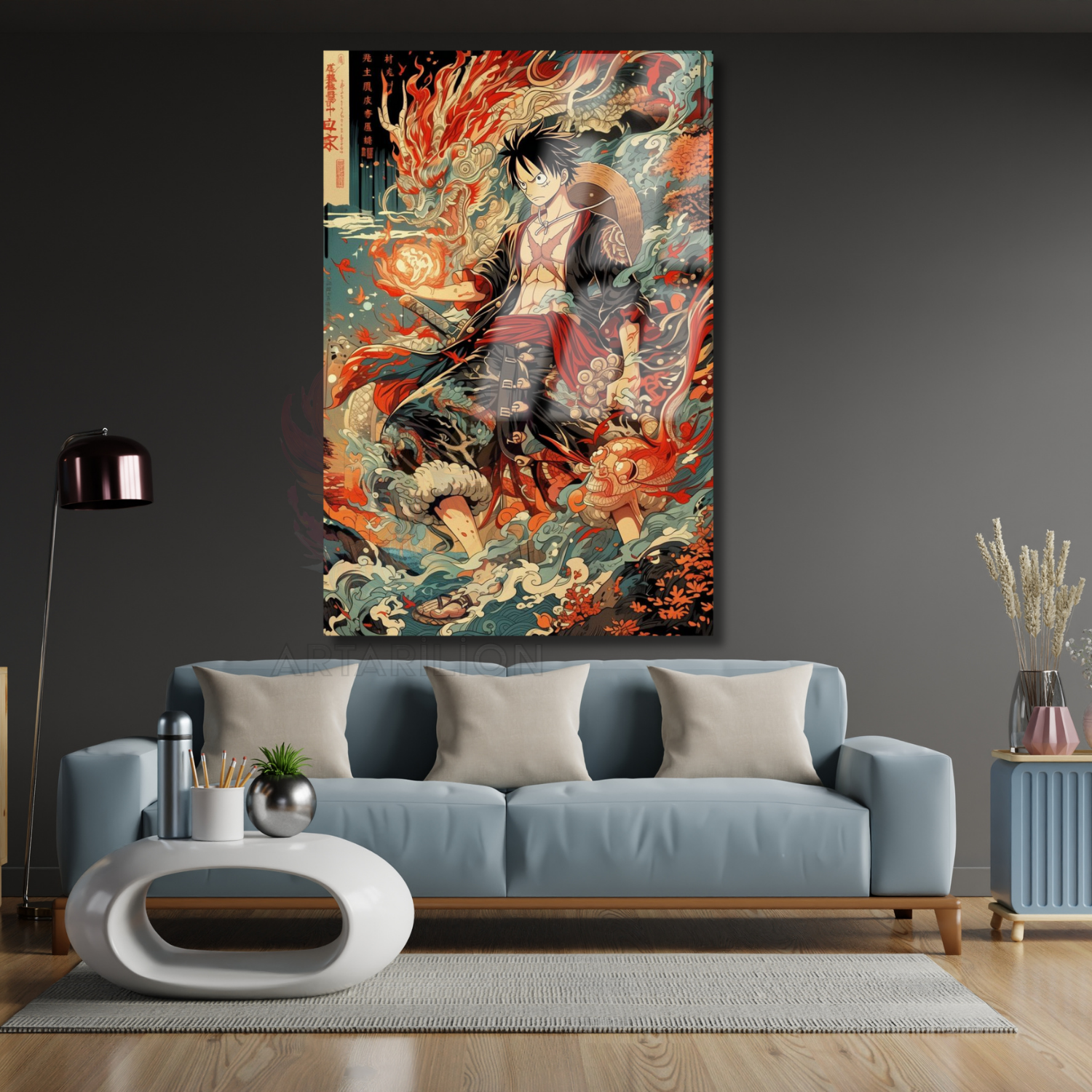 Cam Anime Tablosu One Piece Temalı Luffy Dijital Baskı Cam Tablo Dizi Film Anime Tablosu
