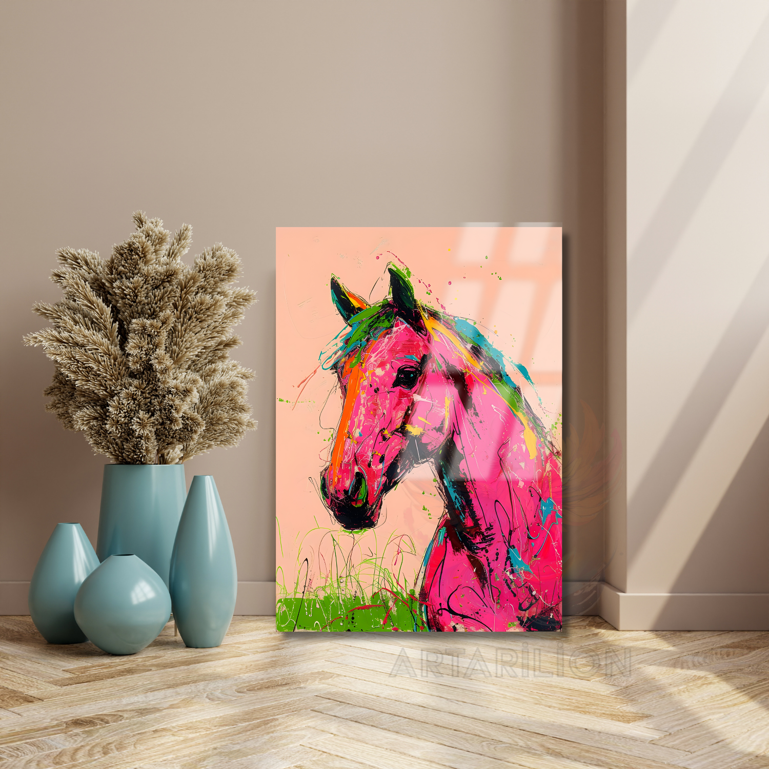 Pembe At Kırılmaz Cam Tablo Salon Tablosu Ev Dekoru Yeni Ev Hediyesi