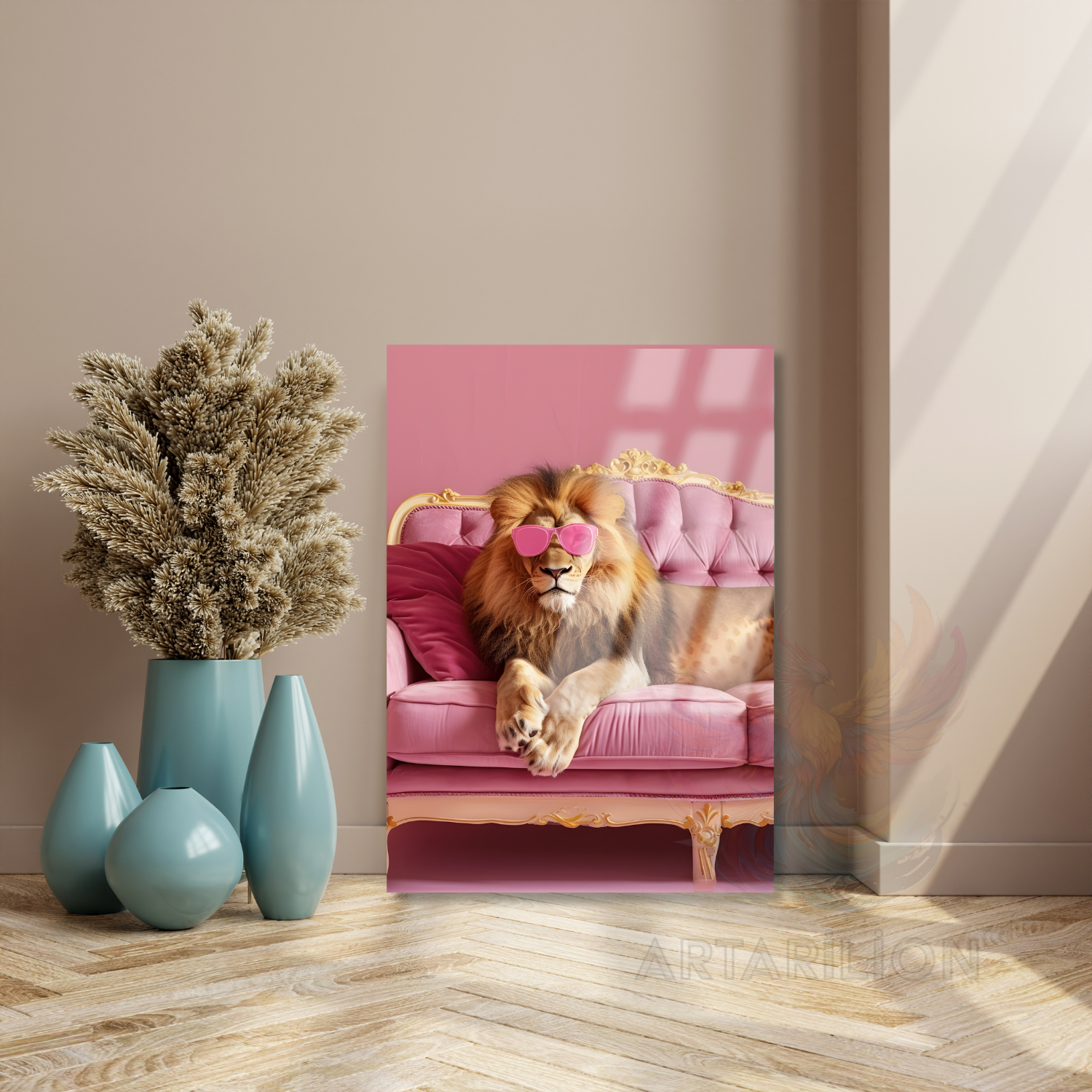 Pembe Gözlüklü Aslan Kırılmaz Cam Tablo Duvar Tablosu Salon Dekoru Yeni Ev Hediyesi
