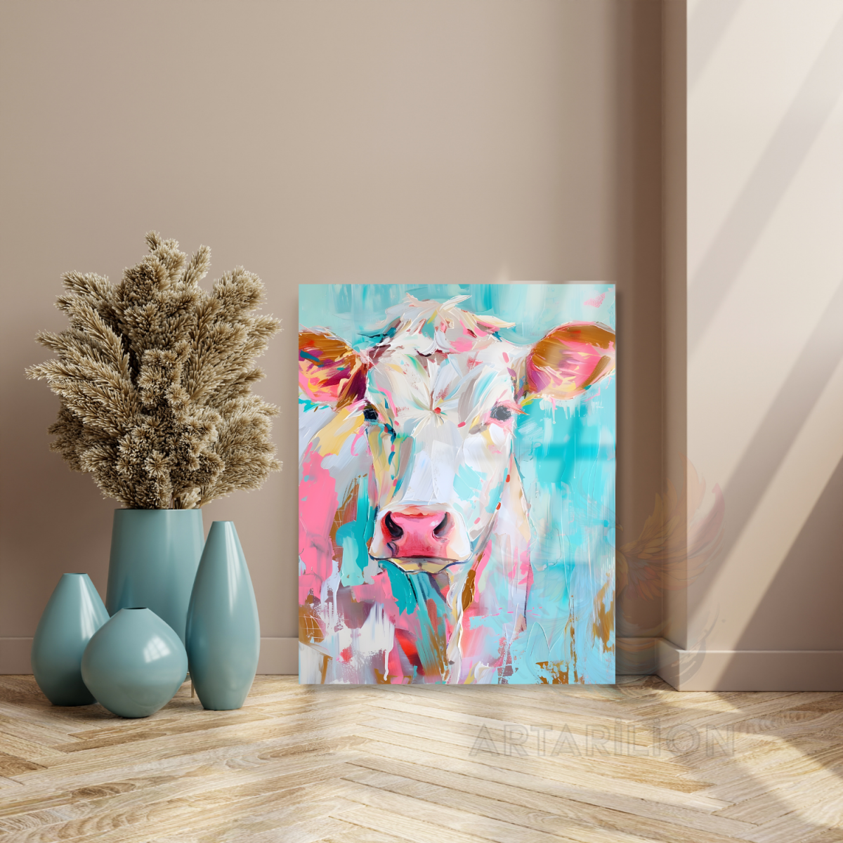 Renkli Boyalı İnek Kırılmaz Cam Tablo Modern Ev Dekoru Duvar Tablosu