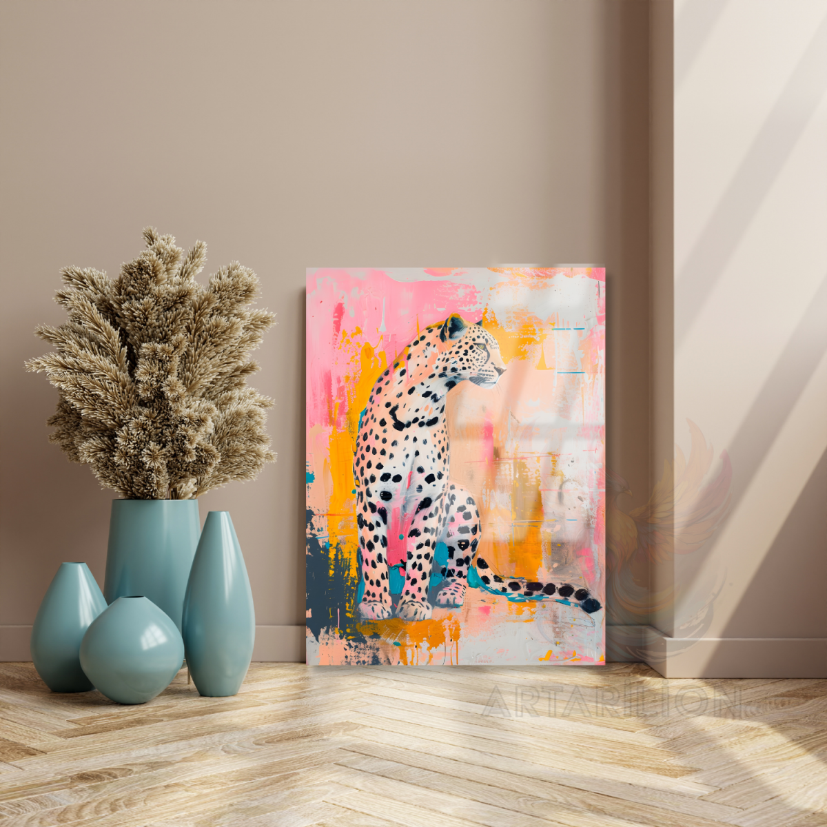 Çita Görseli Kırılmaz Cam Tablo Renkli Modern Ev Duvar Tablosu
