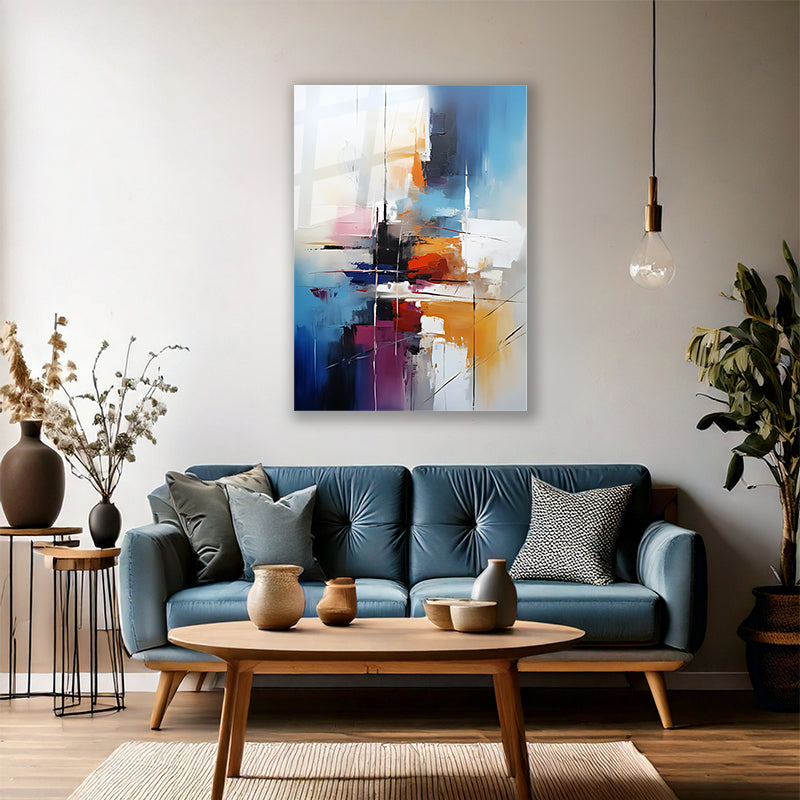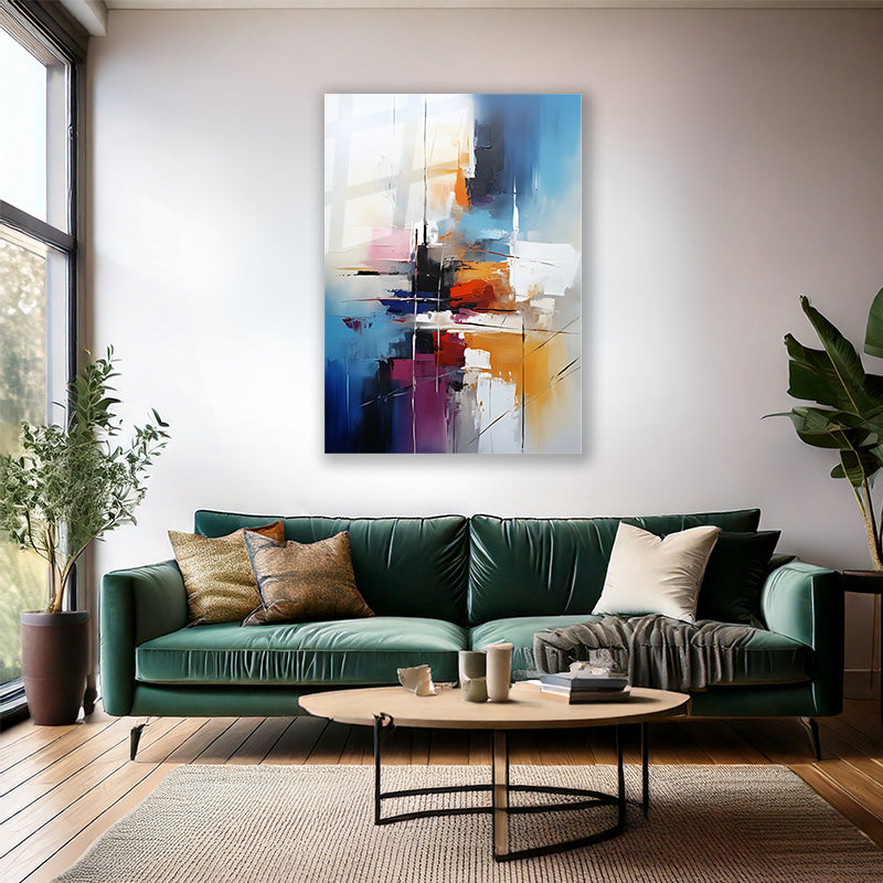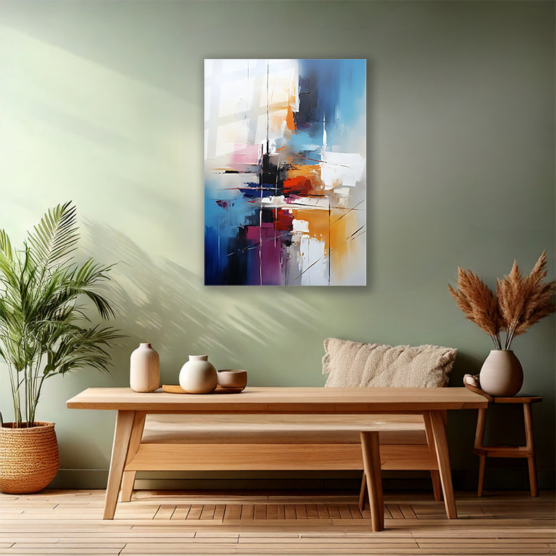 Yağlı Boya Görünümlü Soyut Cam Tablo Renkli Fırça Darbeleri Modern Salon Cam Duvar Tablosu