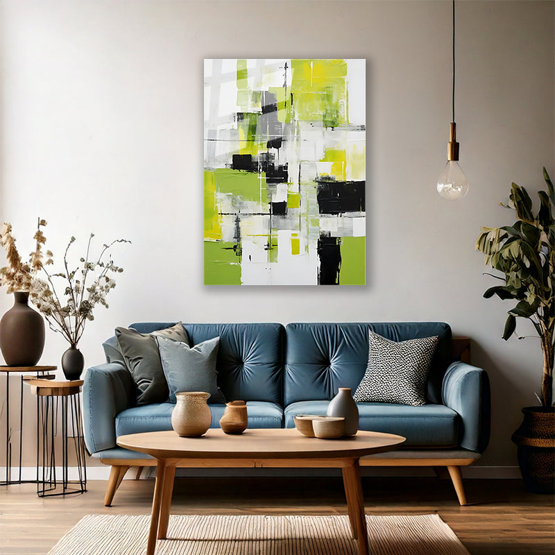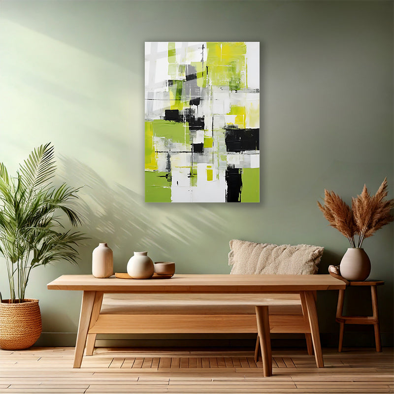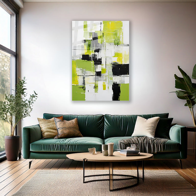 Yağlı Boya Görünümlü Soyut Cam Tablo Yeşil Siyah Fırça Darbeleri Salon Tablosu Duvar Tablosu