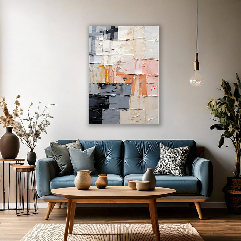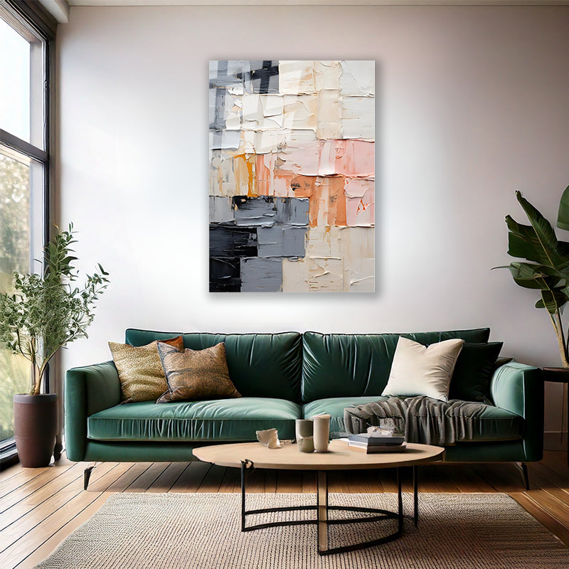 Yağlı Boya Görünümlü Soyut Cam Tablo Sade Modern Salon Tablosu Dekorasyon Cam Duvar Tablosu