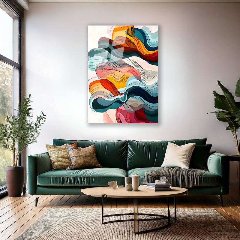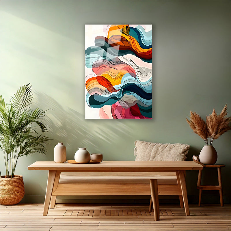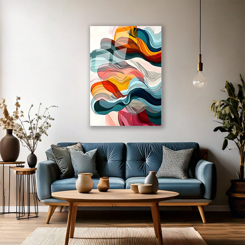 Duman Görünümlü Soyut Renkli Cam Tablo Duvar Tablosu Modern Ev Dekoru Cam Salon Tablosu