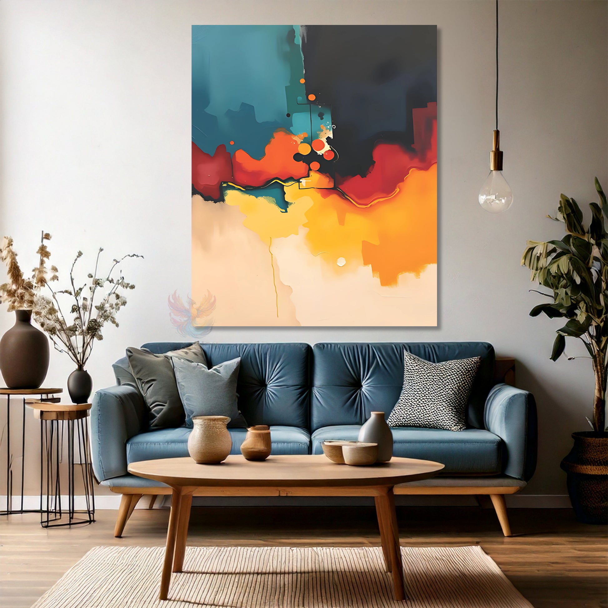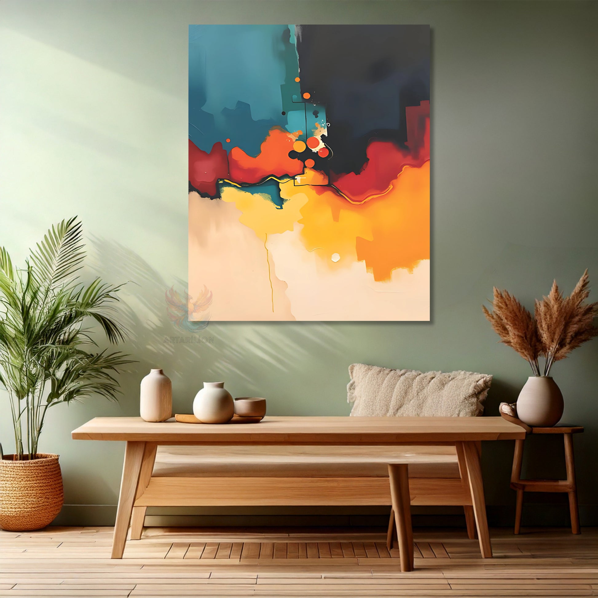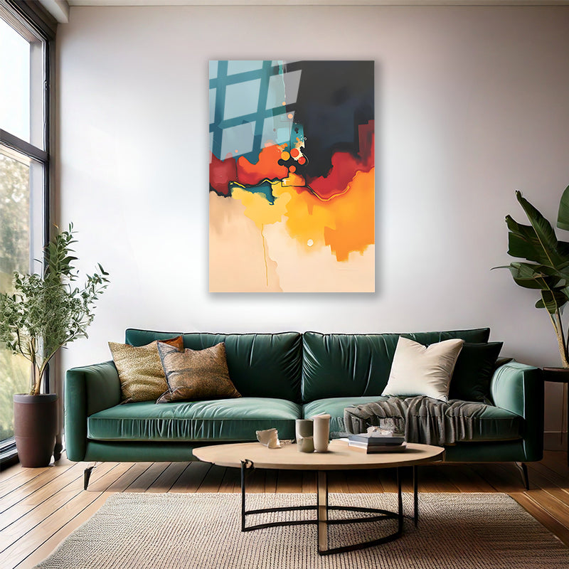 Renklerin Ahengi Soyut Tasarım Cam Duvar Tablosu Cam Tablo Salon Tablosu