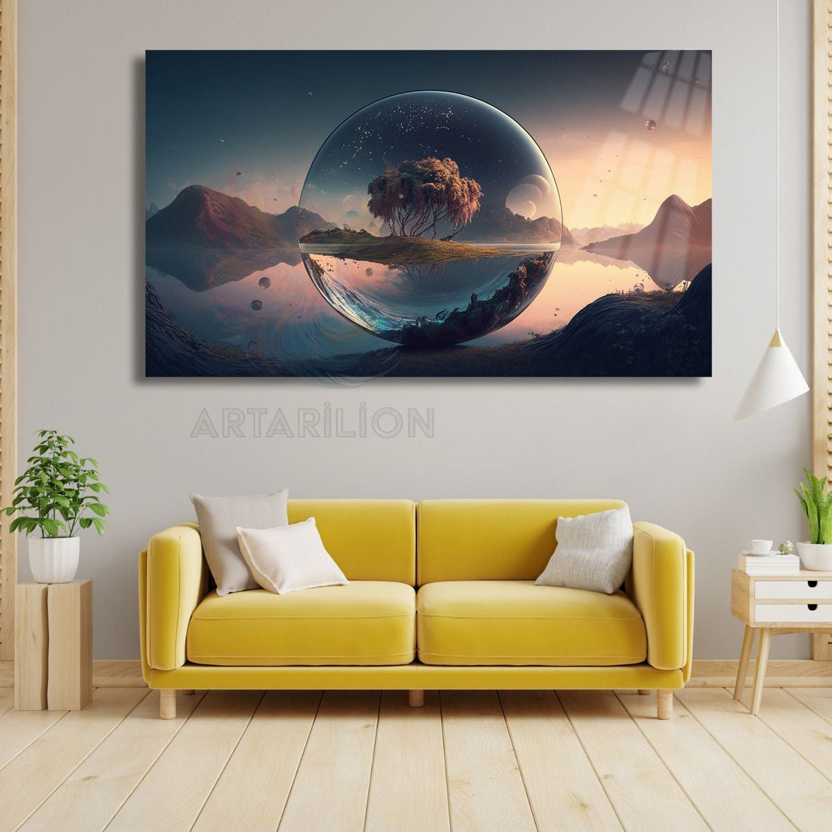 Su Damlası Ağaç Manzarası Soyut Kırılmaz Cam Tablo Yeni Ev Hediyesi Manzara Tablosu