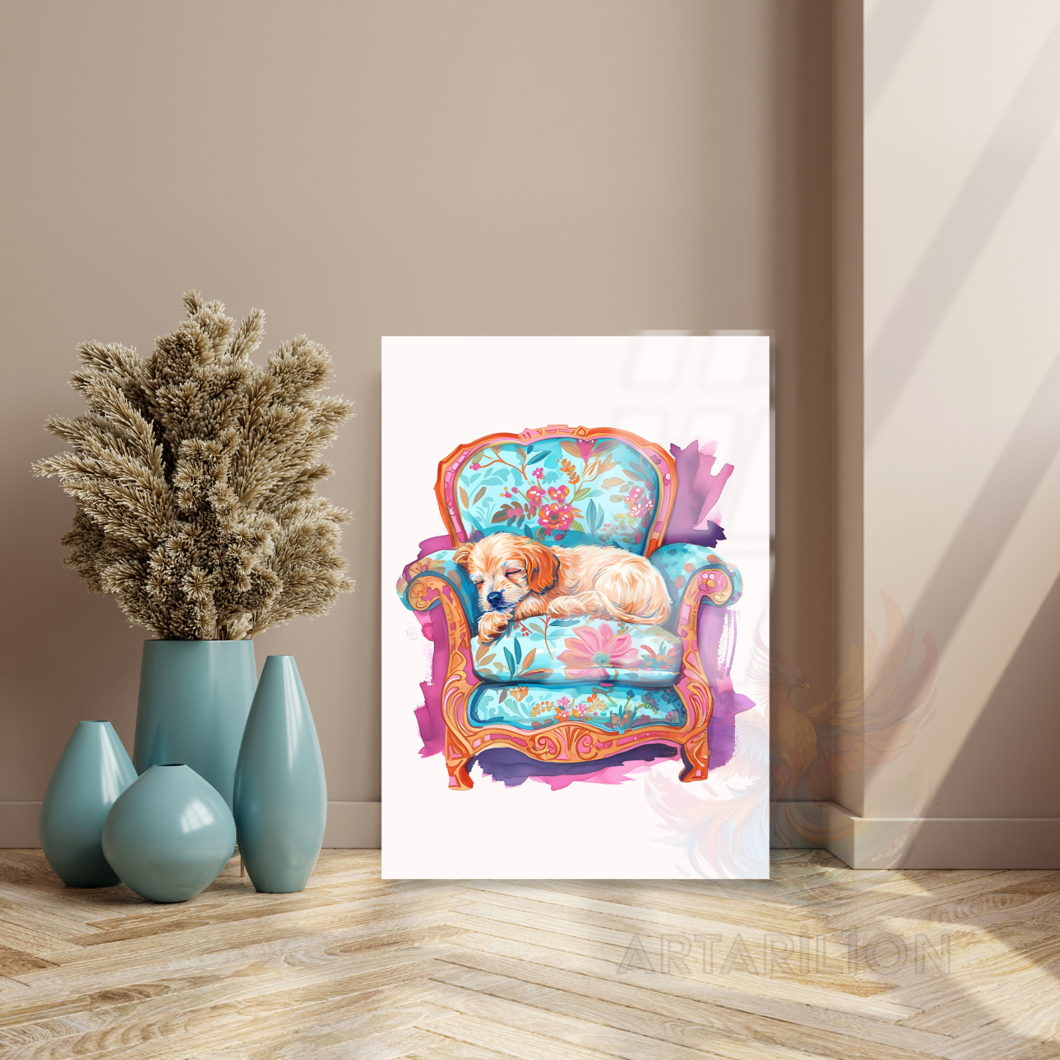 Uyuyan Yavru Köpek Kırılmaz Cam Tablo Modern Sevimli Ev Dekoru Modern Tablo