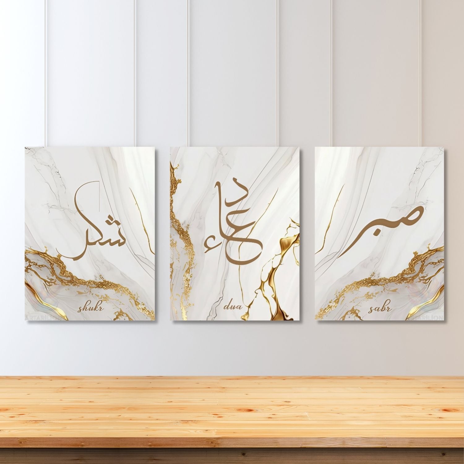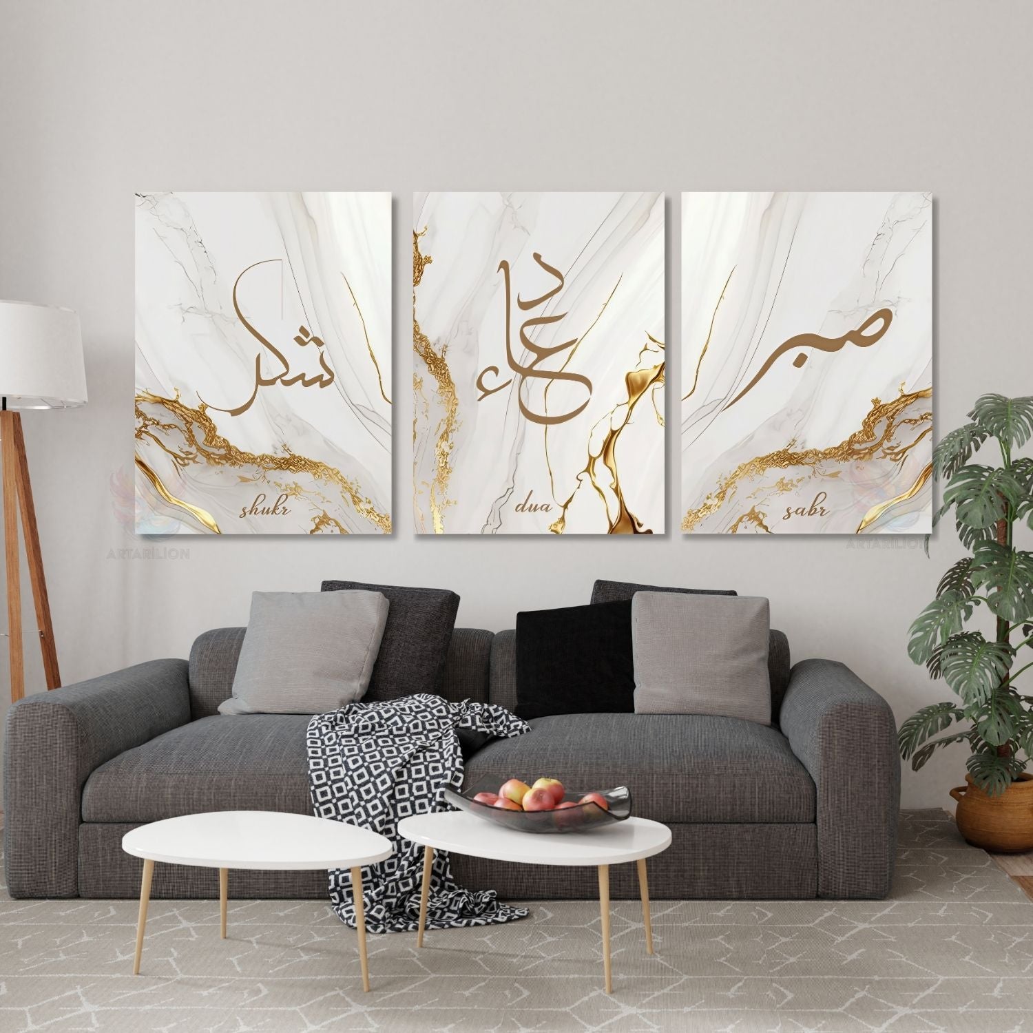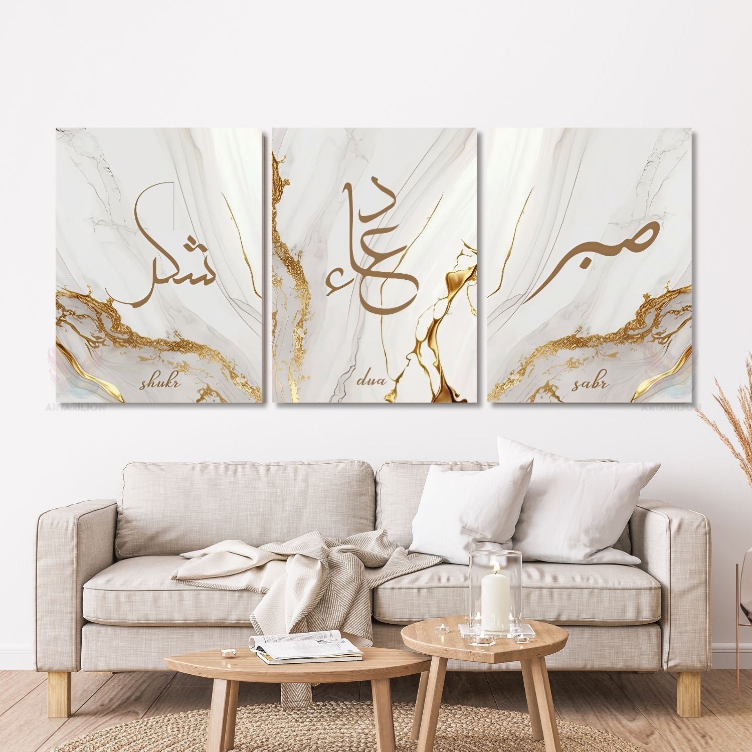 Dikey 3'lü Kanvas Tablo Seti Sabır Şükür Dua Dini Manevi Duvar Salon Tablosu