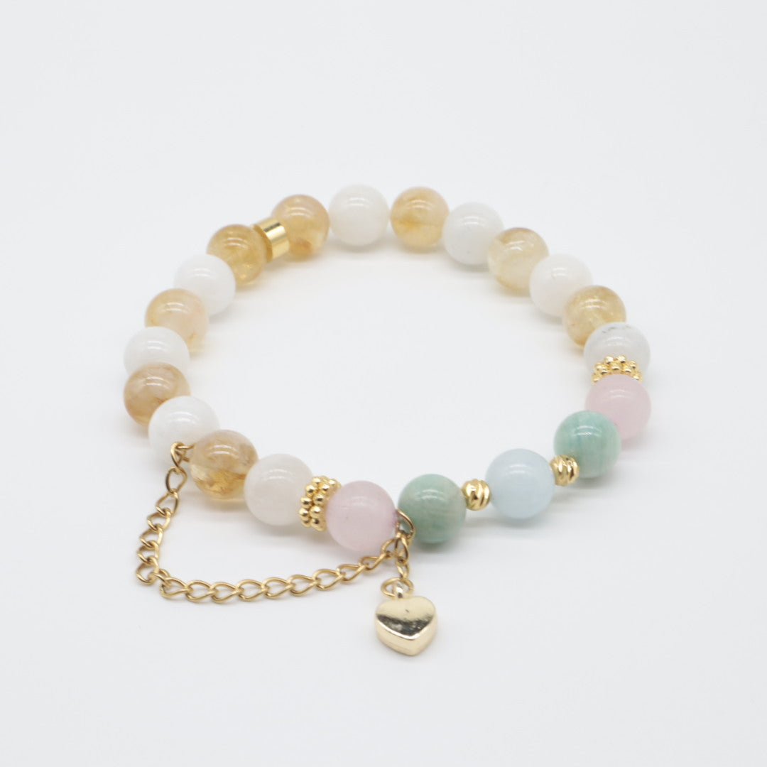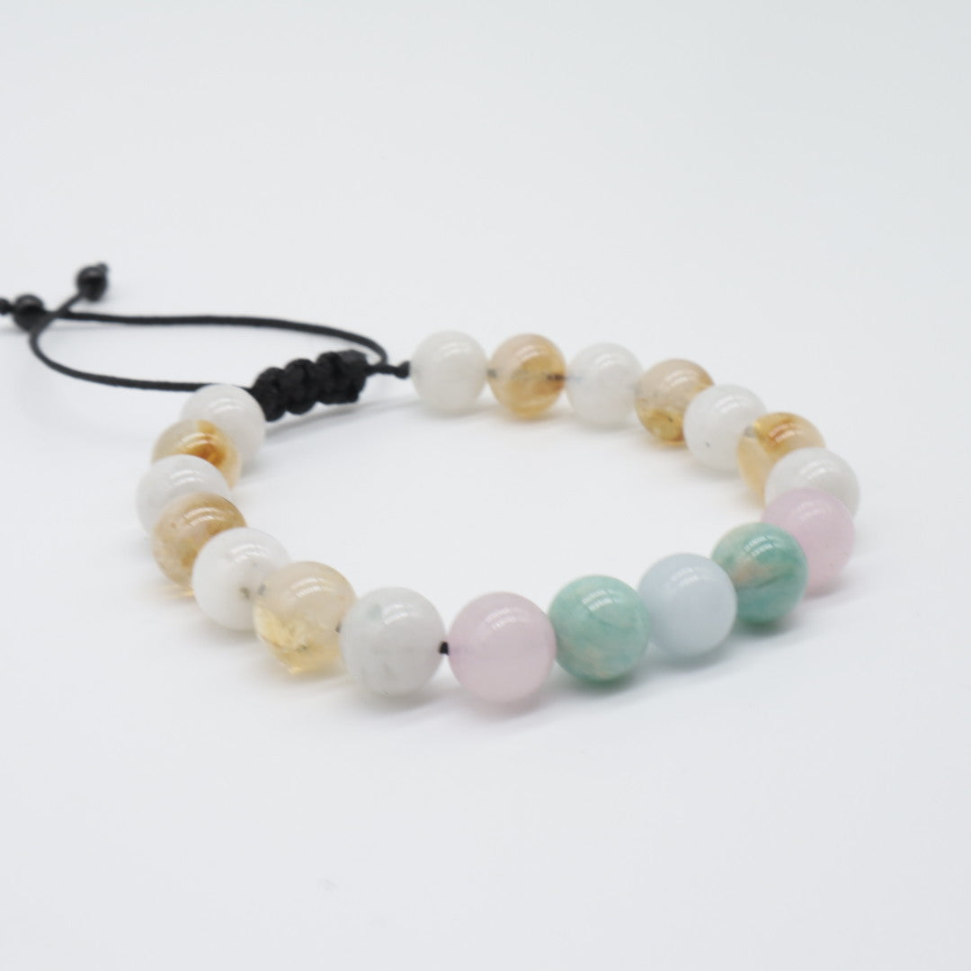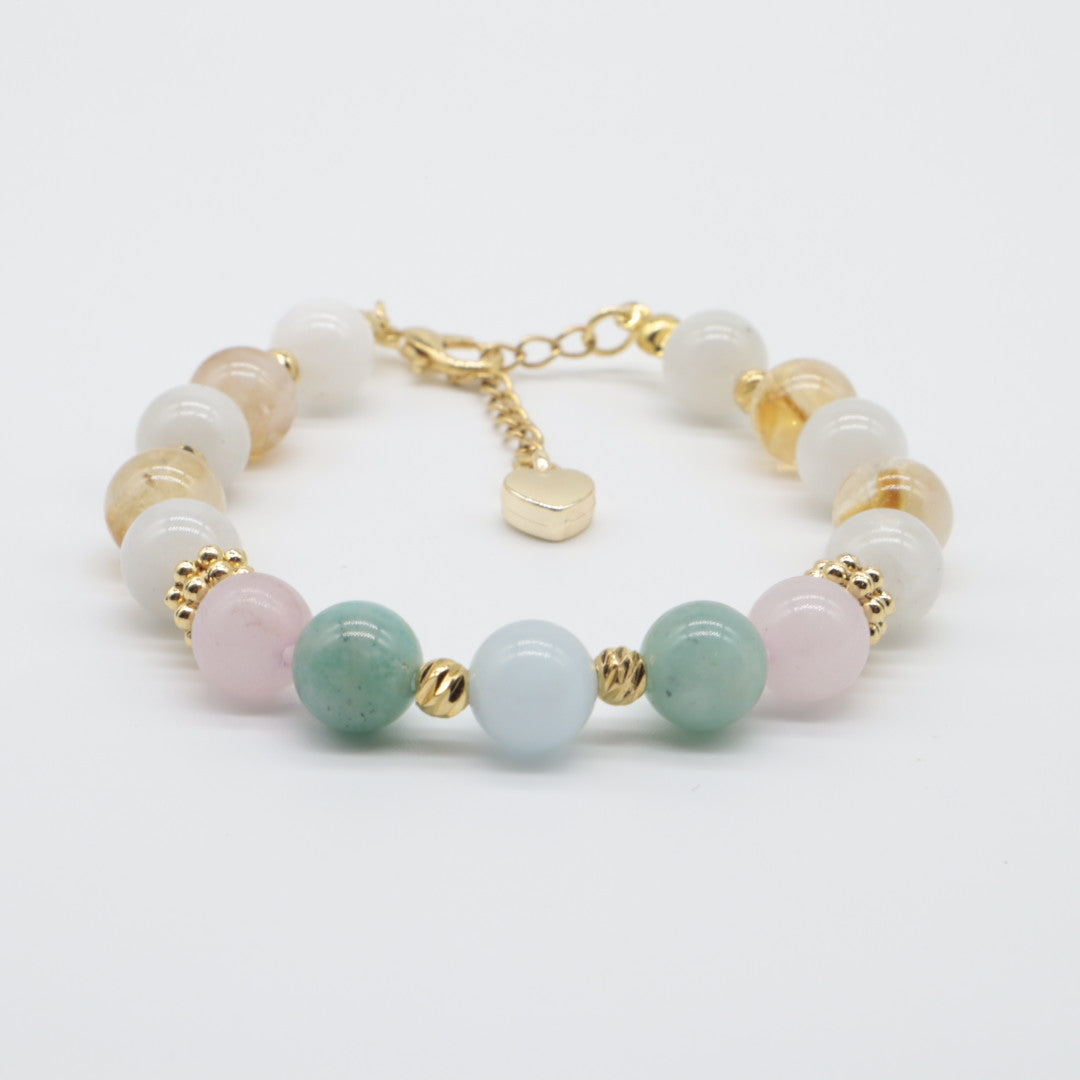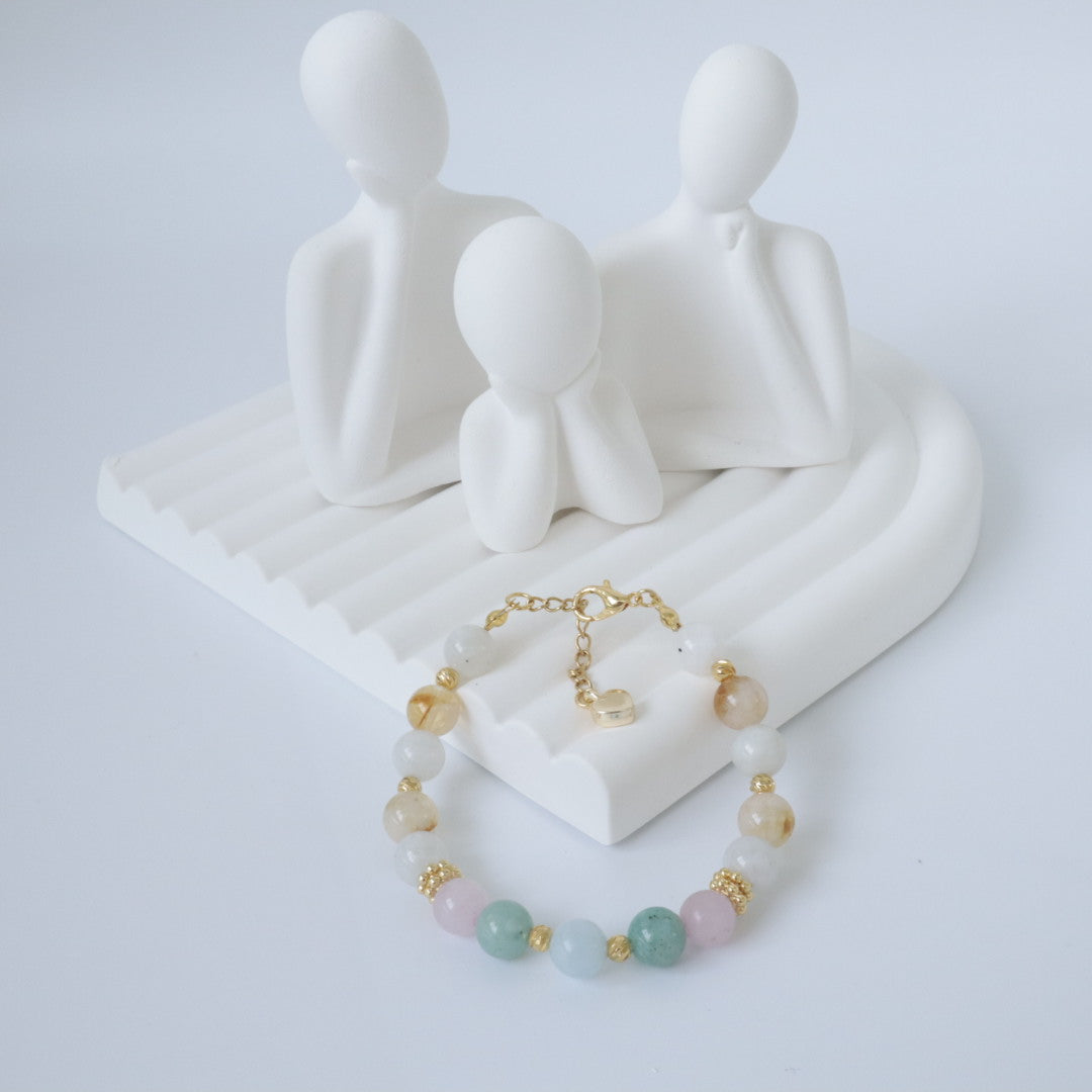 Doğal Taş Anneler Günü Bilekliği, annenizin bileğindeki şıklığı ve anlamı artıracak! Sitrin, bolluk ve bereket enerjisi sunarken, Ay Taşı sezgileri güçlendirir ve duygusal denge sağlar. Pembe Kuvars sevgi ve şefkatin taşıdır ve kalp çakrasını açar. Amazonit, iletişimi desteklerken, Akuamarin berraklık ve huzur getirir. Bu bilezik, annenizin her adımında pozitif enerji ve şifa sunacak. Ona sevginizin en güzel ifadesini bu özel bileklikle sunun ve Anneler Günü'nü unutulmaz kılın!