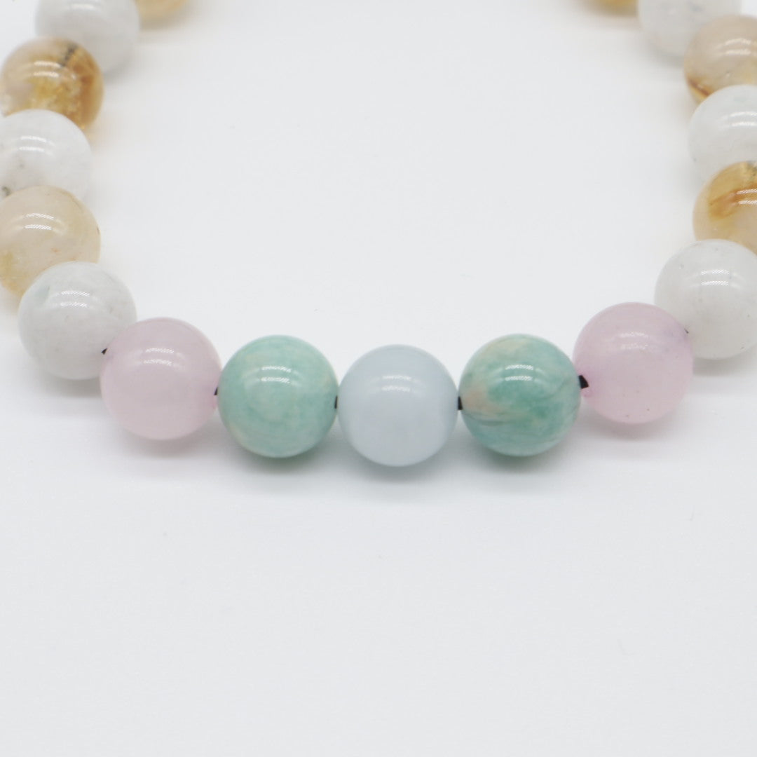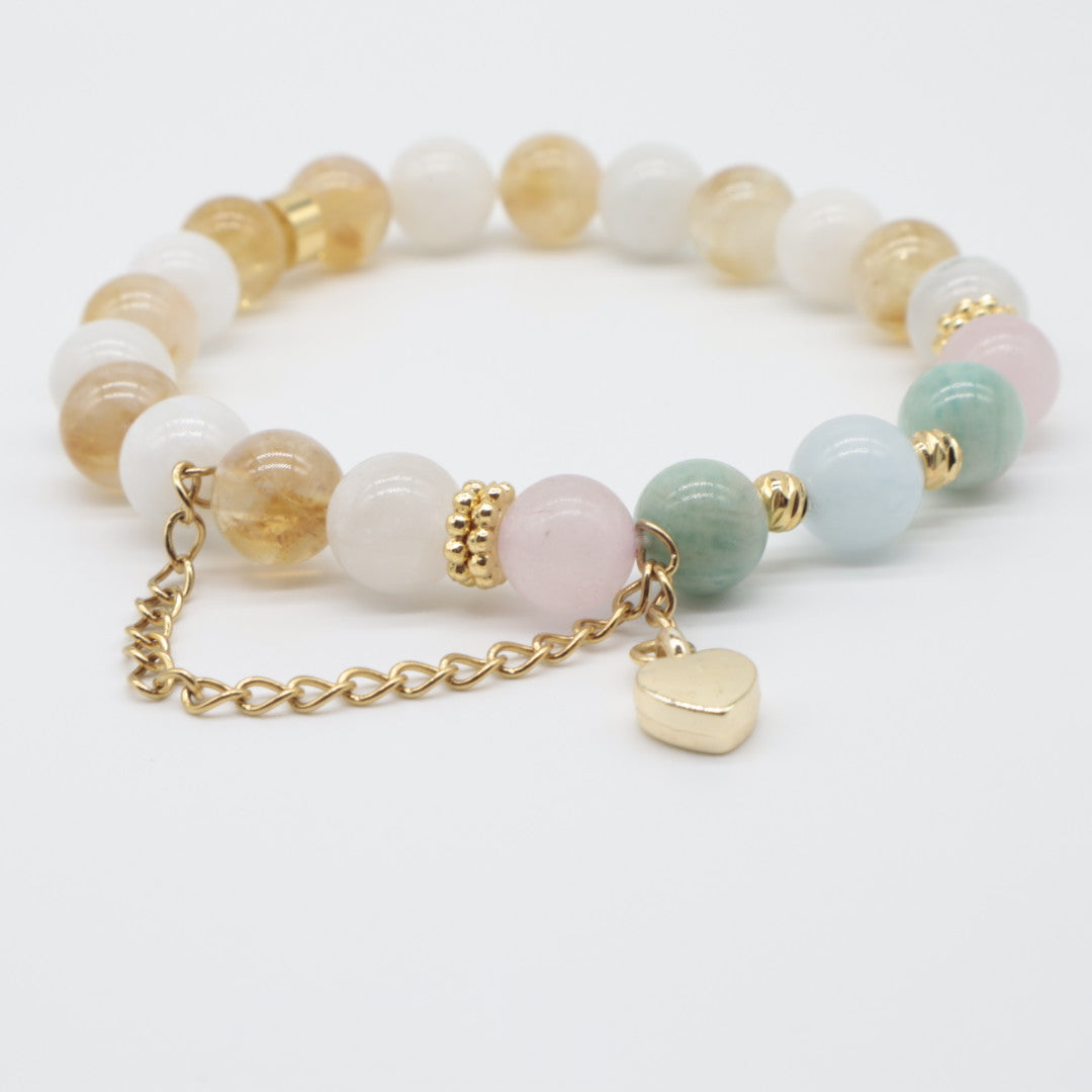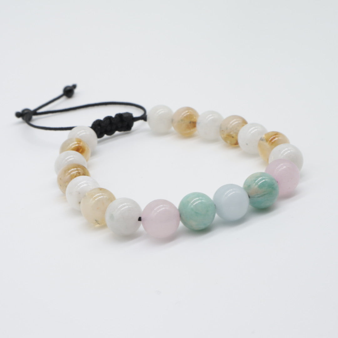Doğal Taş Anneler Günü Bilekliği, annenizin bileğindeki şıklığı ve anlamı artıracak! Sitrin, bolluk ve bereket enerjisi sunarken, Ay Taşı sezgileri güçlendirir ve duygusal denge sağlar. Pembe Kuvars sevgi ve şefkatin taşıdır ve kalp çakrasını açar. Amazonit, iletişimi desteklerken, Akuamarin berraklık ve huzur getirir. Bu bilezik, annenizin her adımında pozitif enerji ve şifa sunacak. Ona sevginizin en güzel ifadesini bu özel bileklikle sunun ve Anneler Günü'nü unutulmaz kılın!