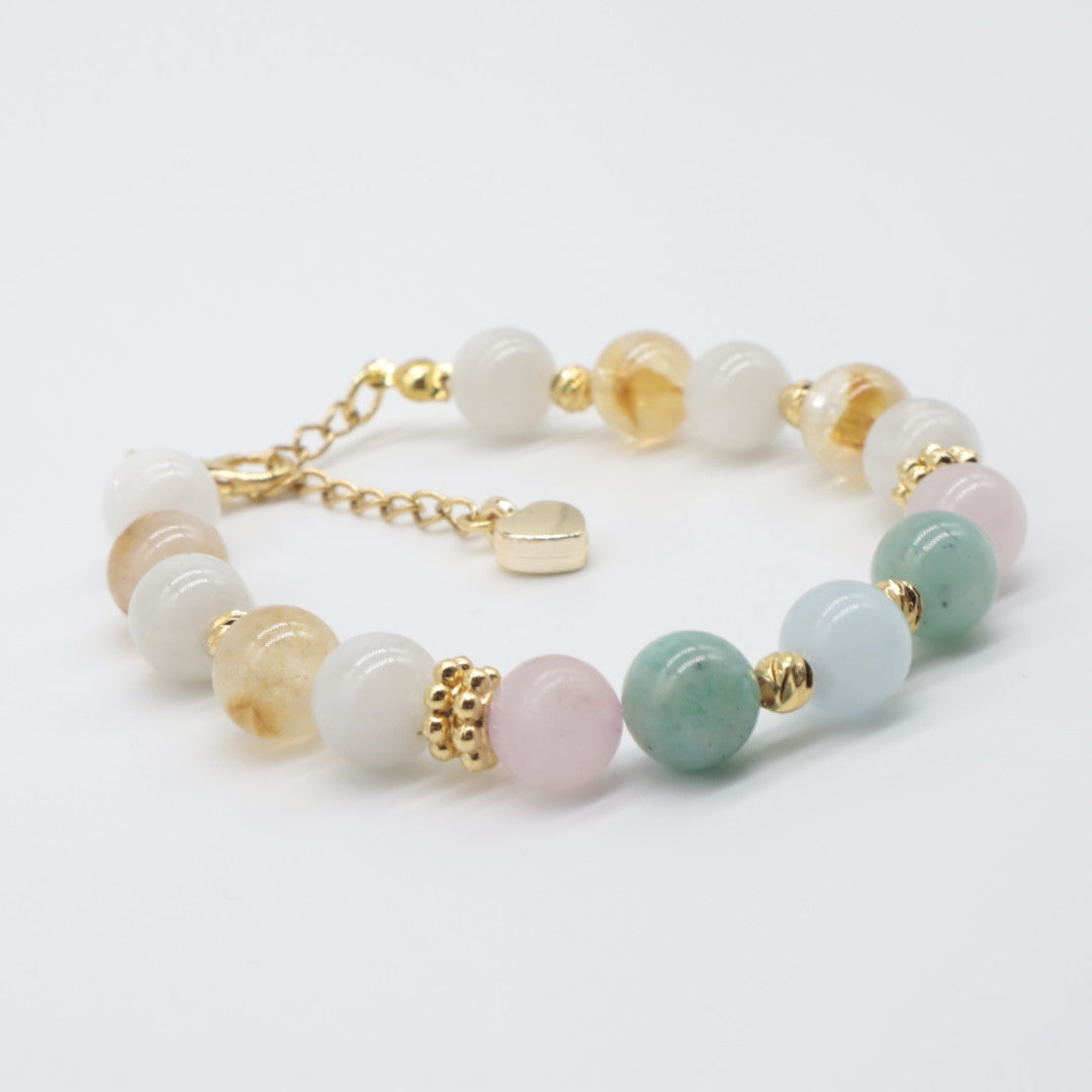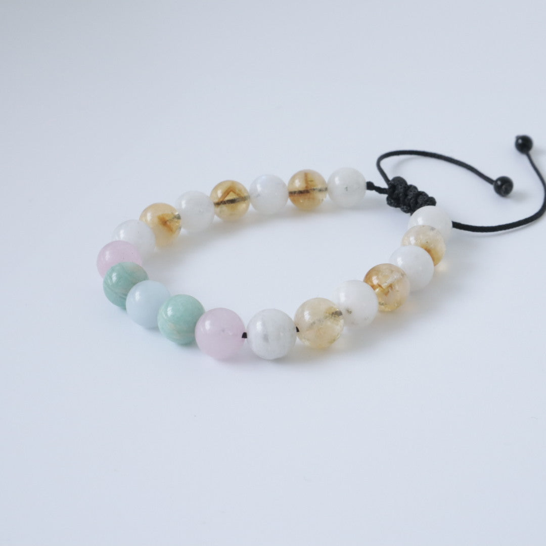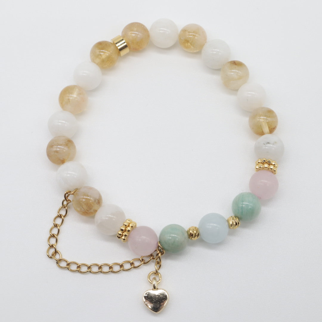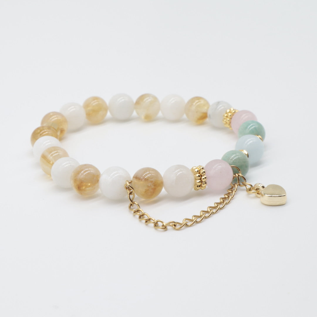 Doğal Taş Anneler Günü Bilekliği, annenizin bileğindeki şıklığı ve anlamı artıracak! Sitrin, bolluk ve bereket enerjisi sunarken, Ay Taşı sezgileri güçlendirir ve duygusal denge sağlar. Pembe Kuvars sevgi ve şefkatin taşıdır ve kalp çakrasını açar. Amazonit, iletişimi desteklerken, Akuamarin berraklık ve huzur getirir. Bu bilezik, annenizin her adımında pozitif enerji ve şifa sunacak. Ona sevginizin en güzel ifadesini bu özel bileklikle sunun ve Anneler Günü'nü unutulmaz kılın!