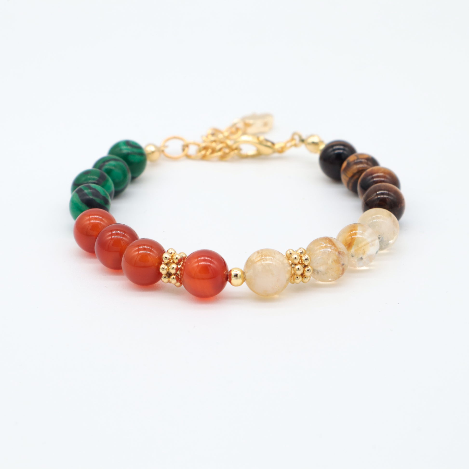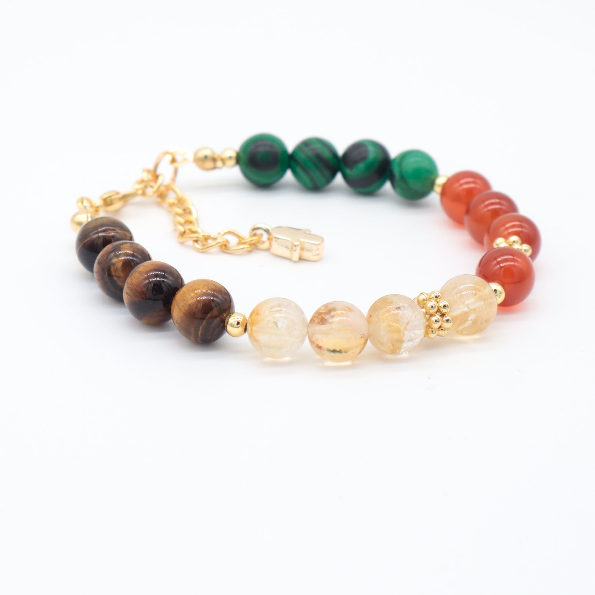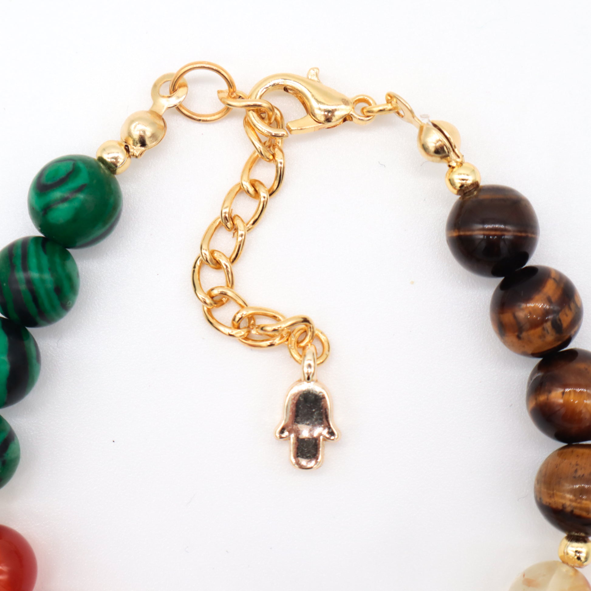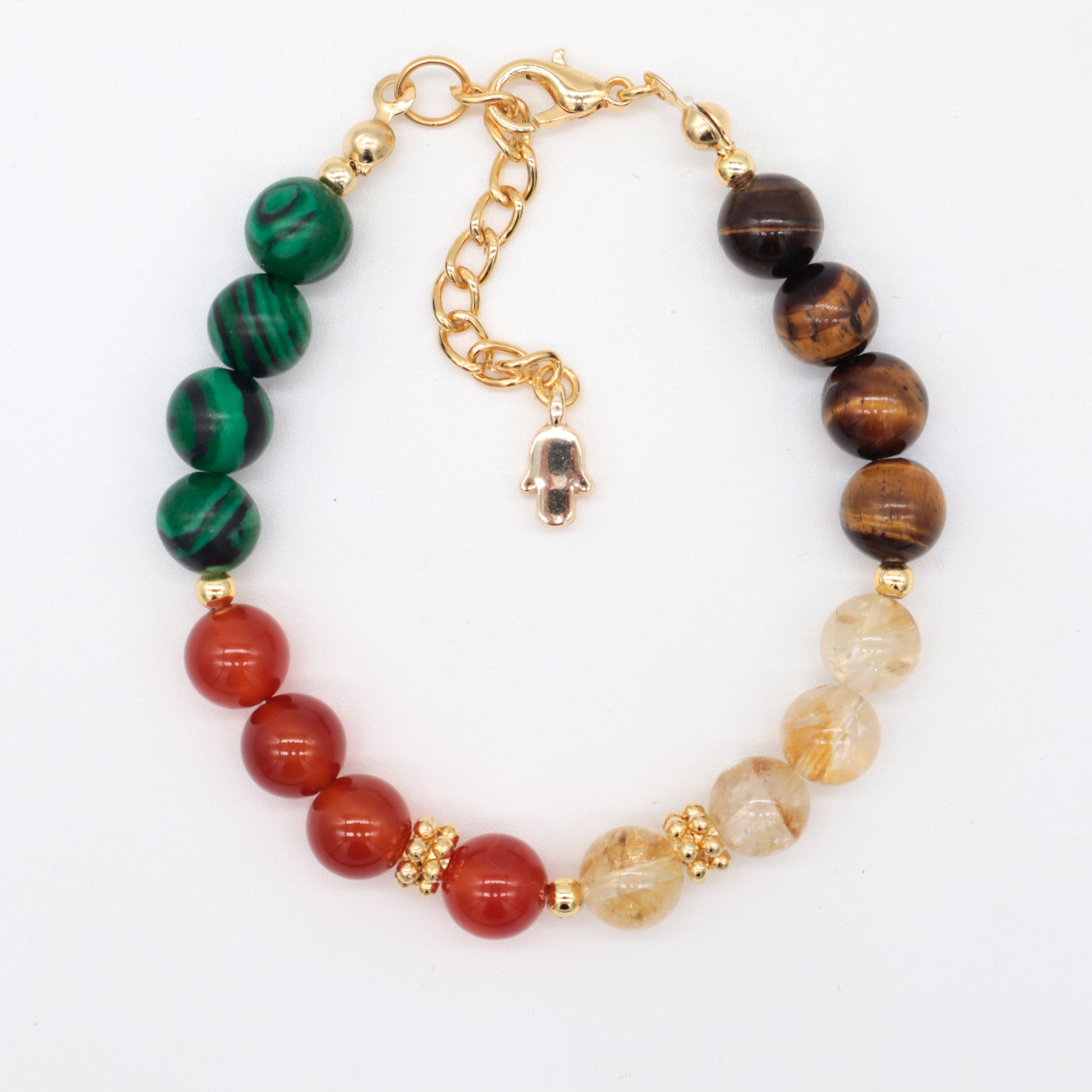 Artaril Doğal Taş Kadın Bereket Bilekliği Kaplan Gözü Sitrin Akik Malakit 8 mm
