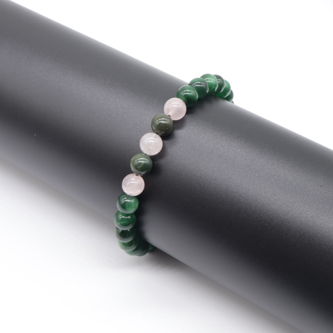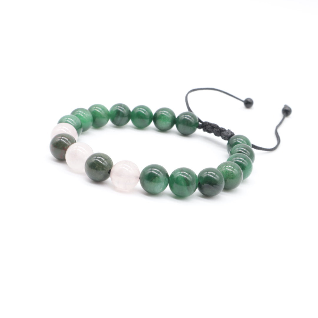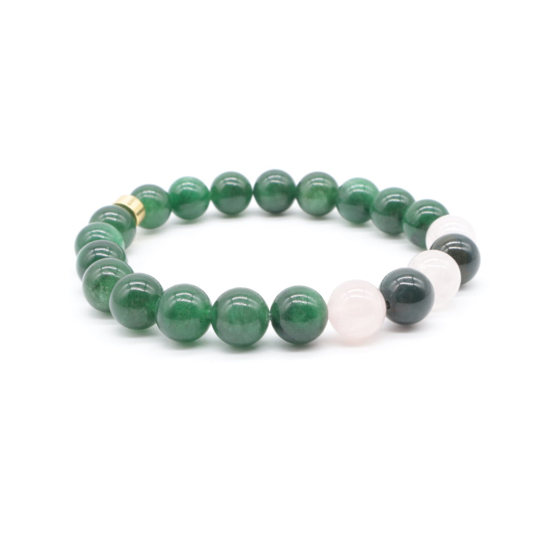 Bu özel bileklik, içsel sevgi ve denge arayan kadınlar için özel olarak tasarlanmıştır. Yeşim, kan taşı ve pembe kuvars gibi güçlü doğal taşların birleşimi, kalp çakrasını güçlendirmeye ve içsel sevgiyle dolu bir yaşamı teşvik etmeye yardımcı olur.