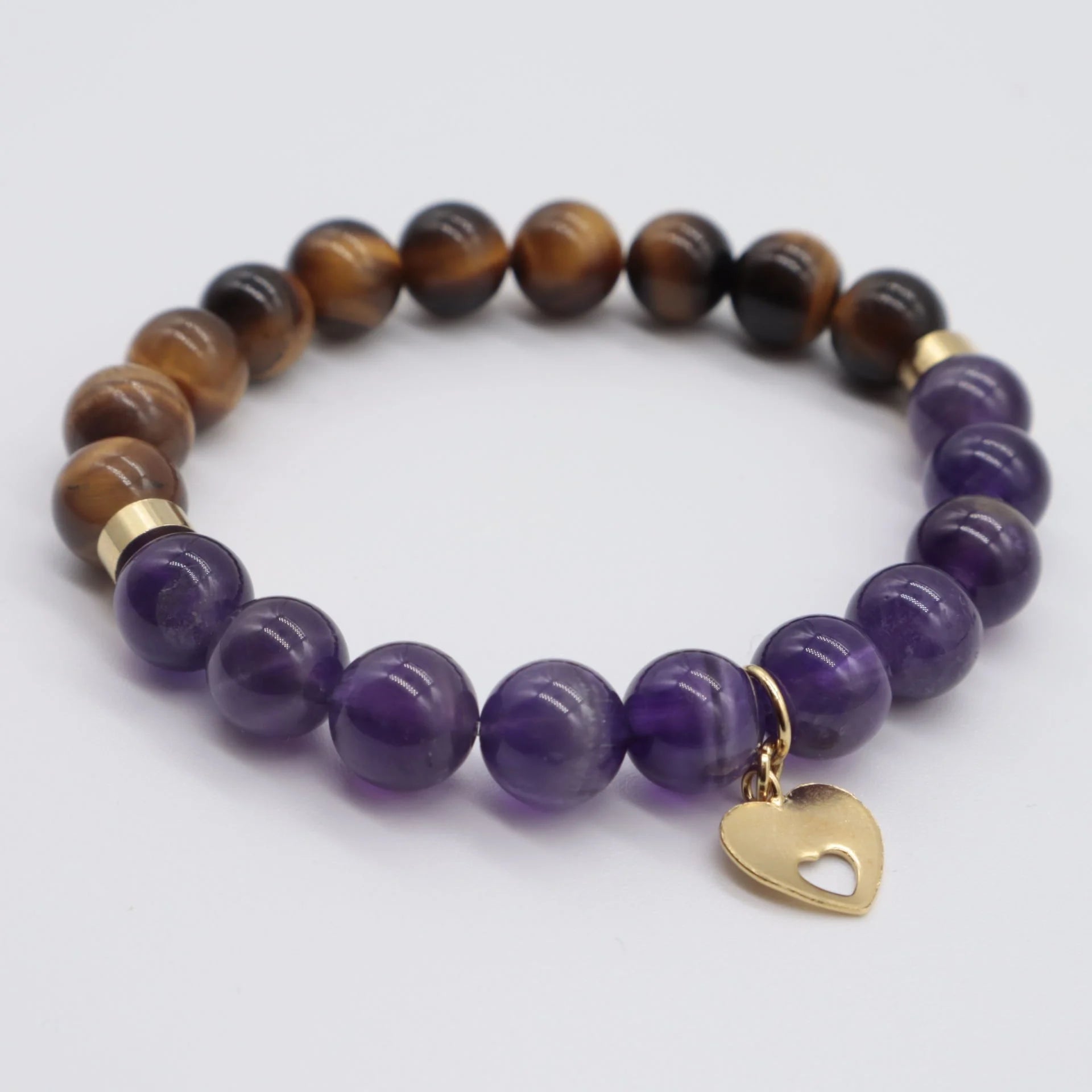 Artaril Doğal Taş Kadın Bileklik Ametist Kaplan Gözü 8MM