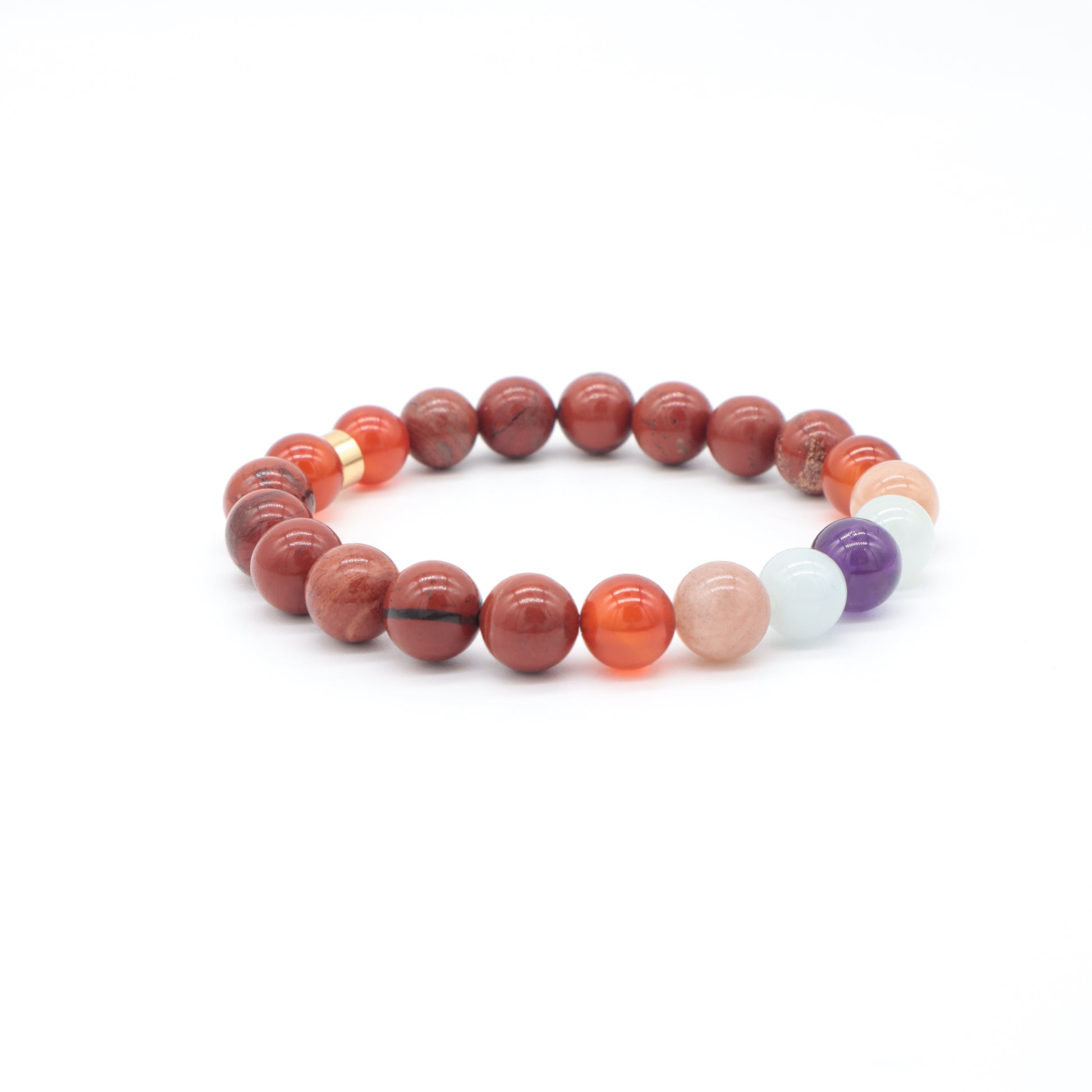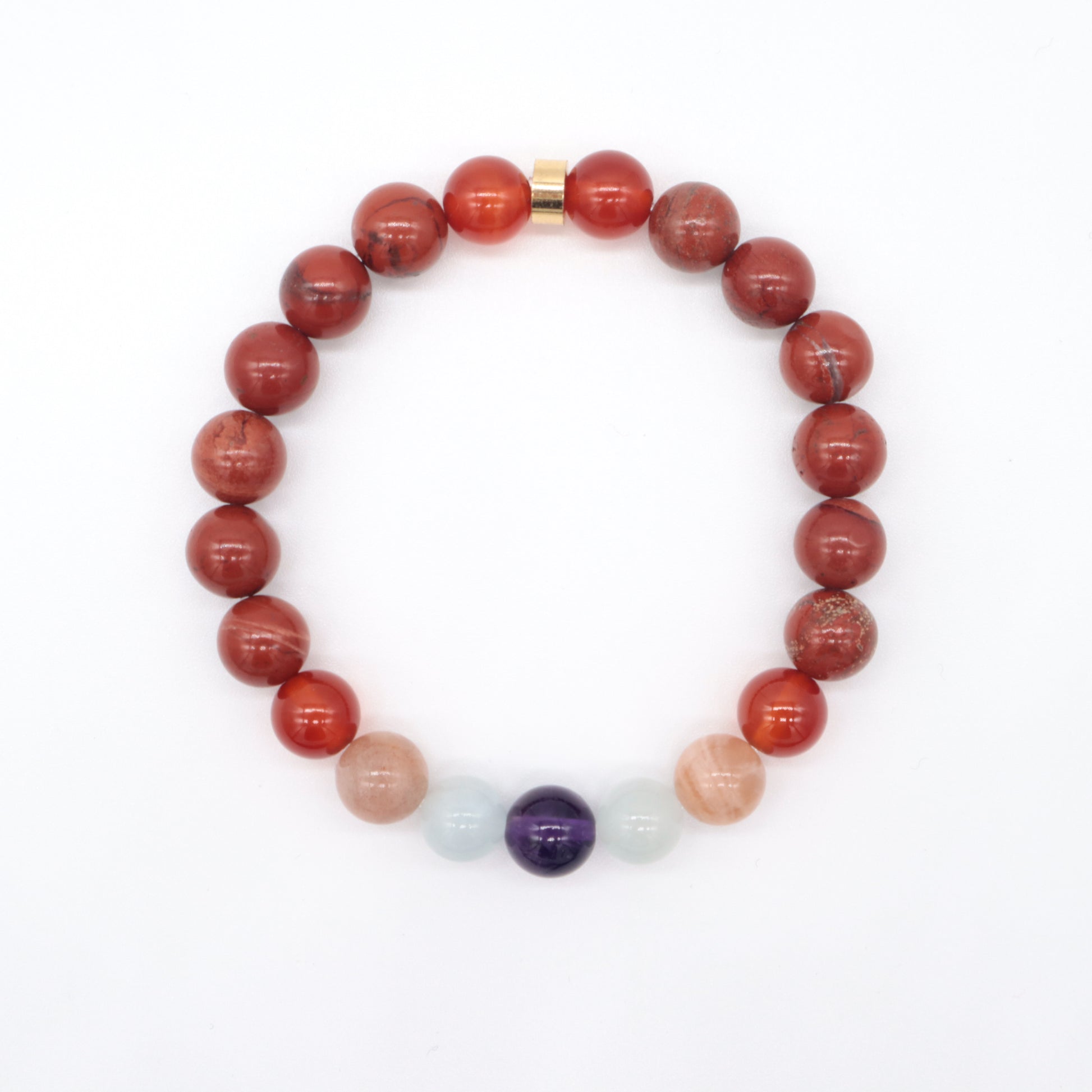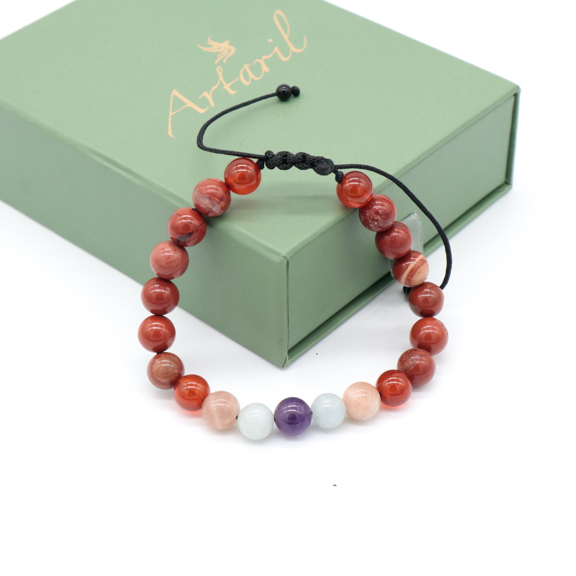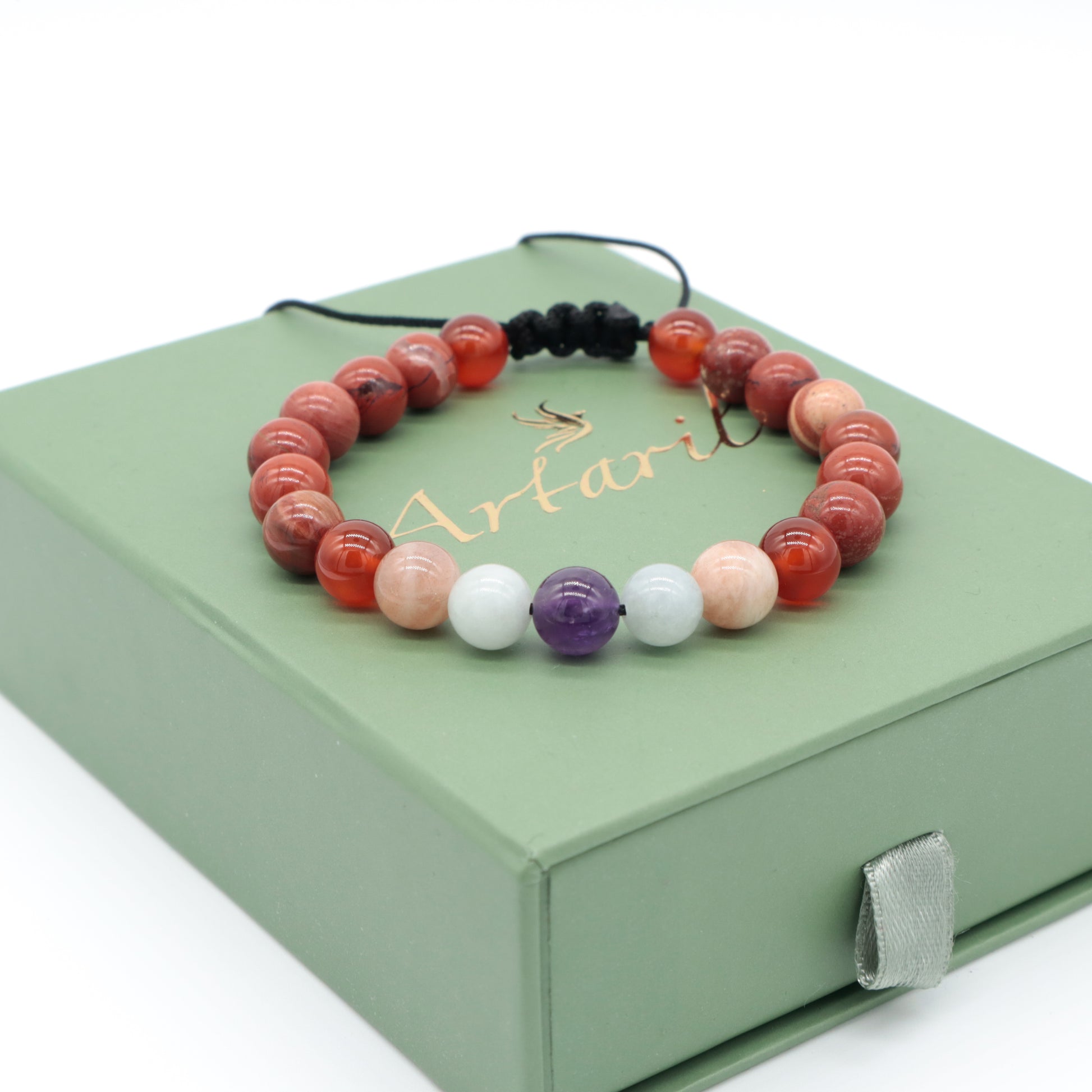 Doğal taşların güçlü enerjileriyle tasarlanmış öfke kontrol bilekliği ile tanışın! Kırmızı Jasper, Akik, Güneş Taşı, Akuamarin ve Ametist taşlarının birleşimi, duygusal dengeyi sağlamak ve öfkeyi kontrol altına almak için mükemmel bir çözümdür. Bu özel bileklik, yaşamınıza huzur ve sakinlik getirecek.