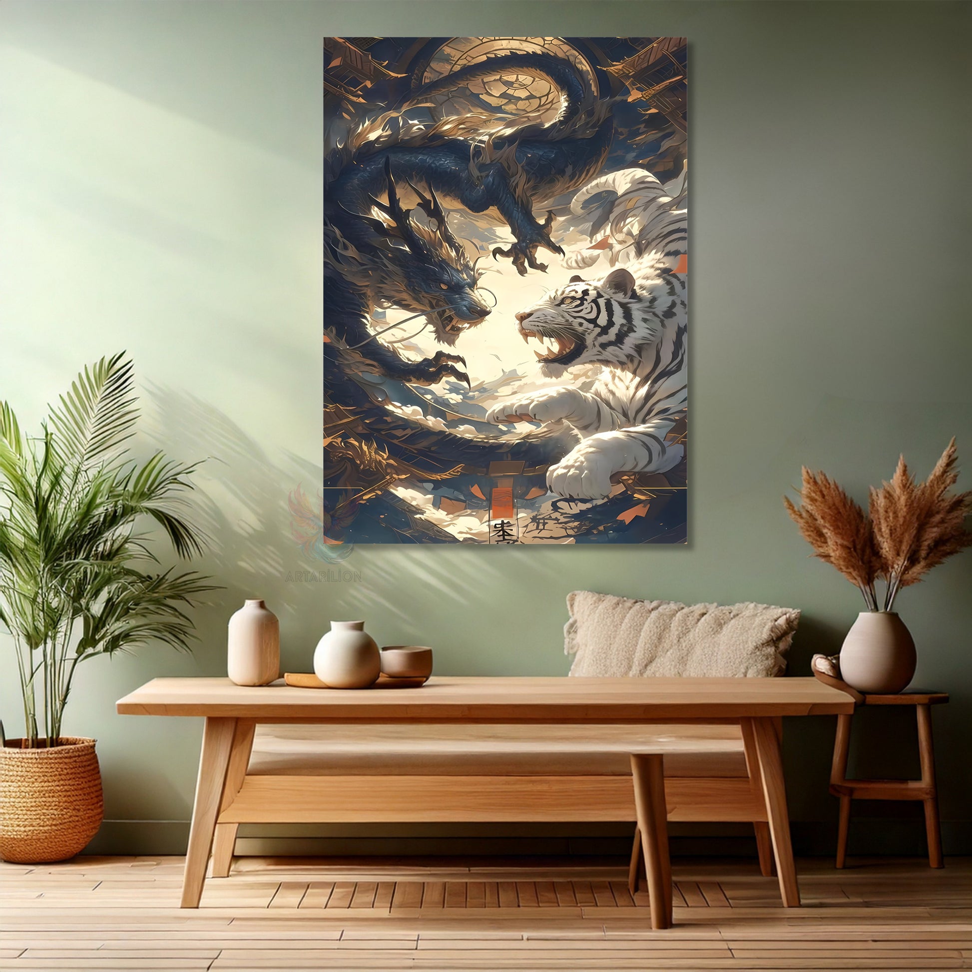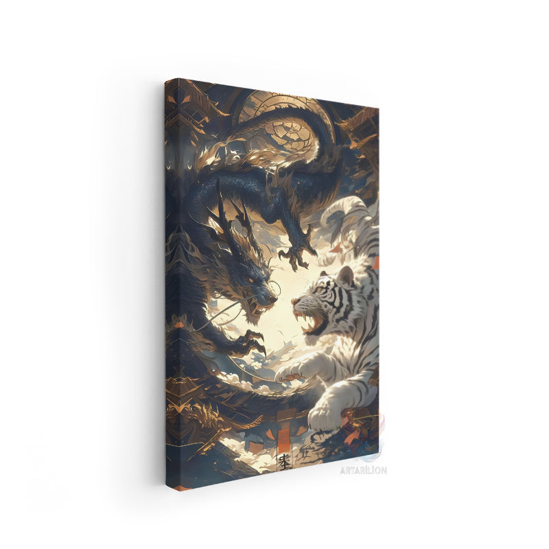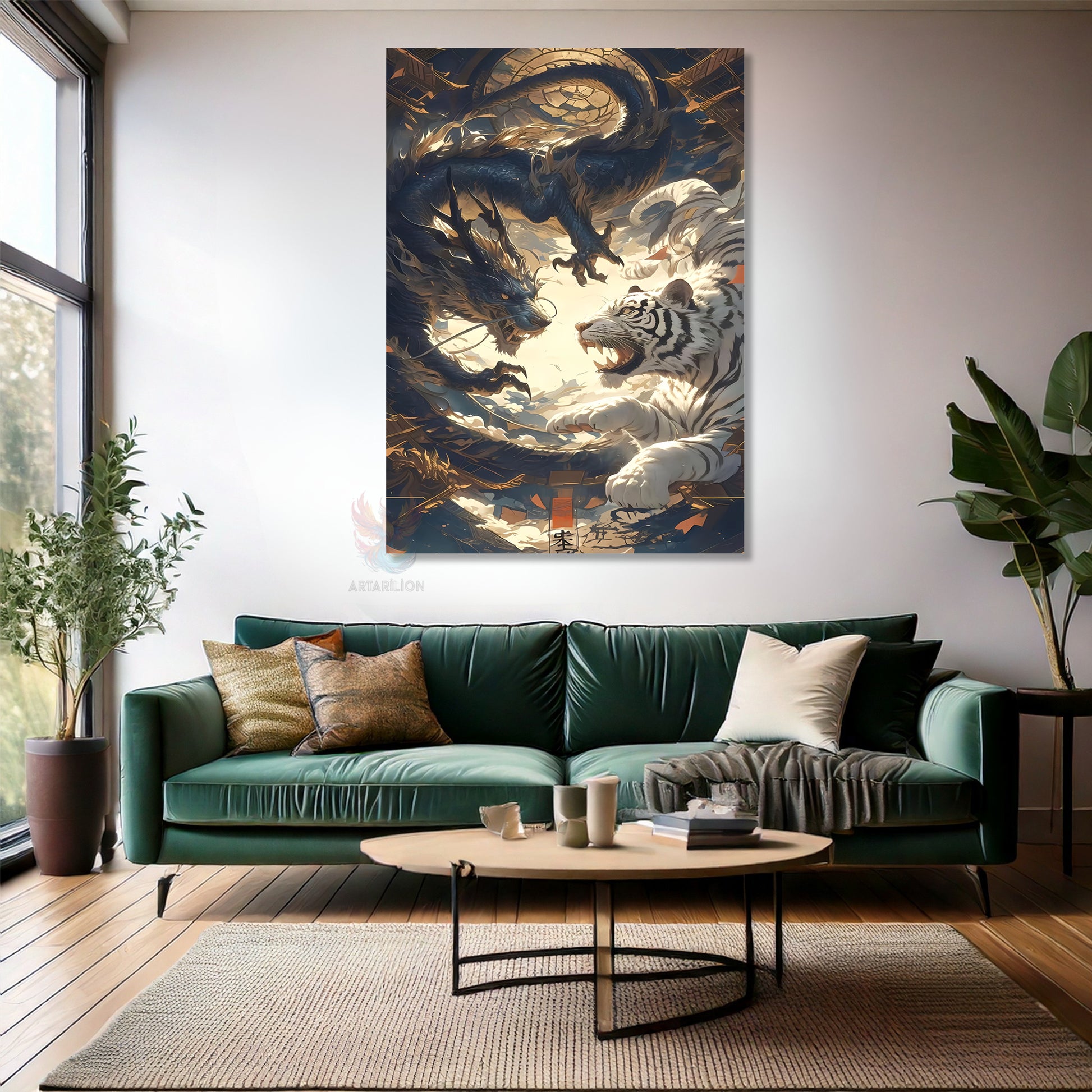 Kanvas Tablo Ev Ofis Duvar Tablosu Ejderha ve Kaplan Yeni Ev Hediyesi Kanvas Ev Dekoru
