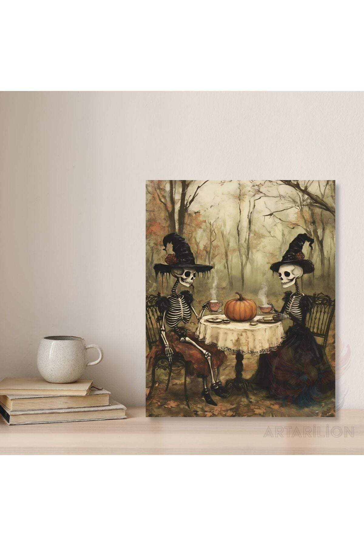 Gotik Piknik Cadılar Bayramı Temalı Kanvas Duvar Tablosu Yeni Ev Hediyesi Kanvas Ev Dekoru