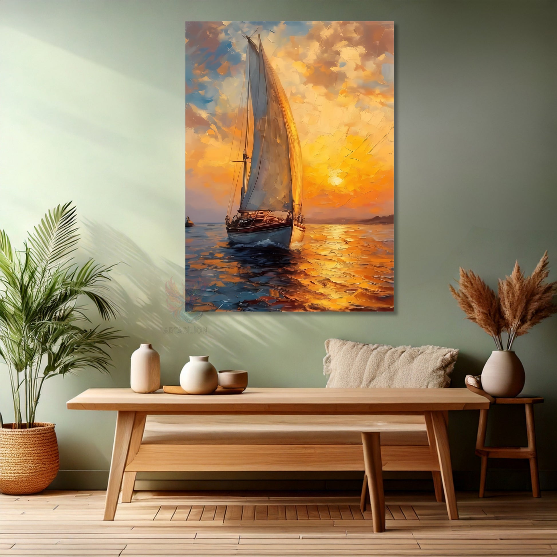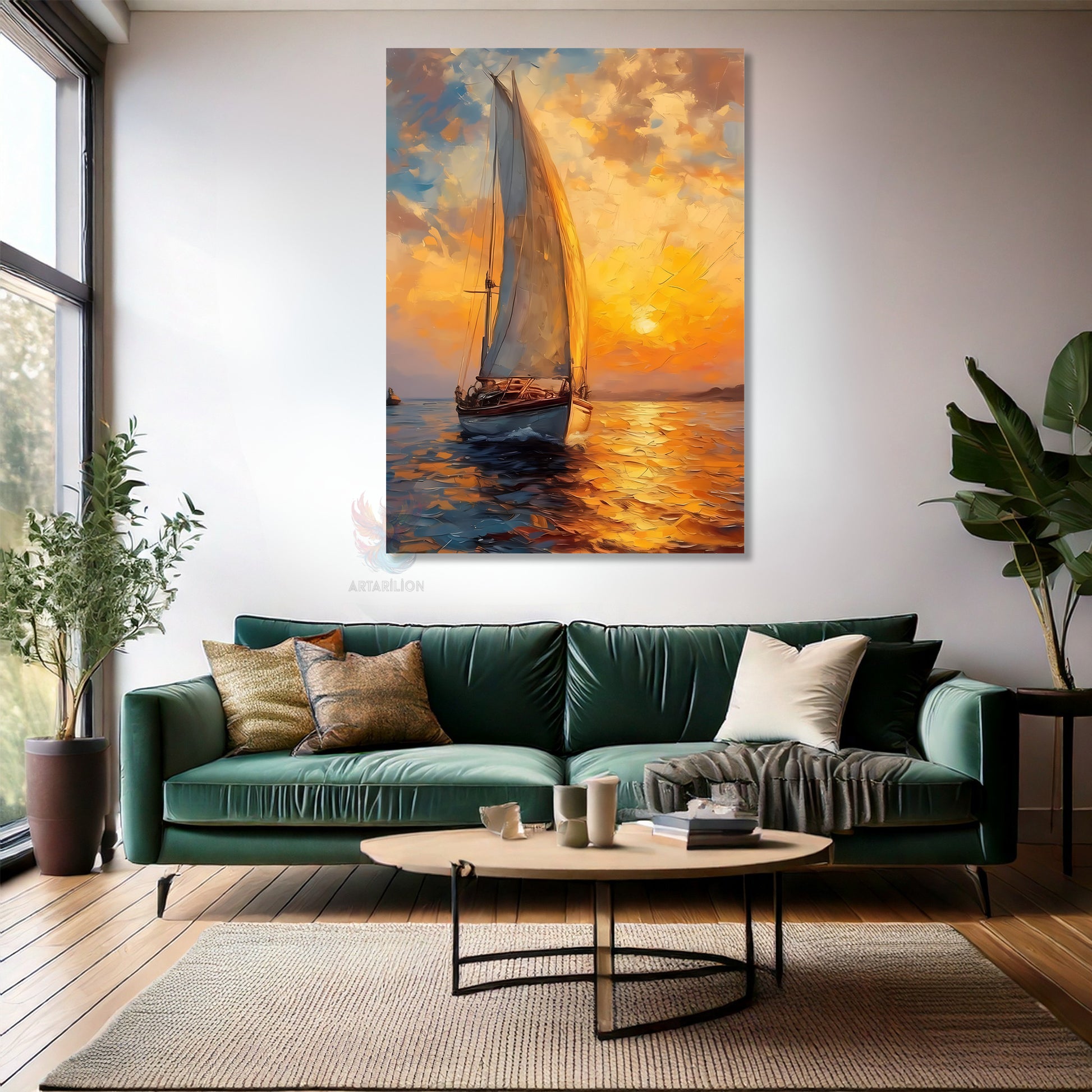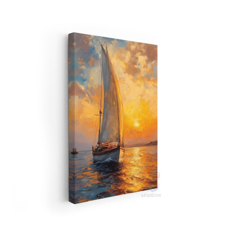 Kanvas Tablo Ev Ofis Duvar Tablosu Gün Batımı ve Tekne Yeni Ev Hediyesi Kanvas Ev Dekoru