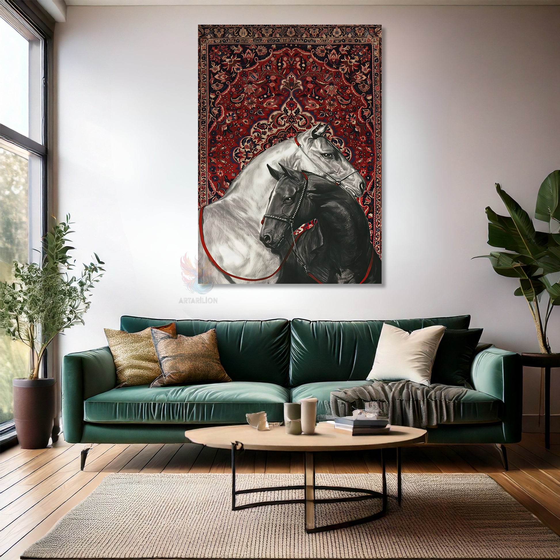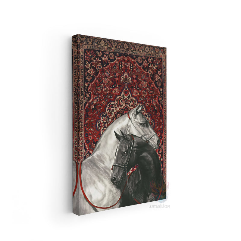 Kanvas Tablo Ev Ofis Duvar Tablosu Hali Motifi Siyah Beyaz Atlar Yeni Ev Hediyesi Kanvas Ev Dekoru