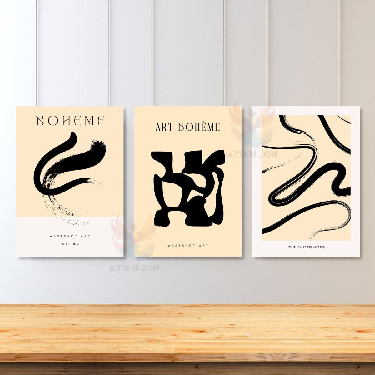 3'lü Set Kanvas Tablo Minimalist Tasarım Salon Tablosu Soyut Fırça Darbeleri Bohemian Kanvas Tablo