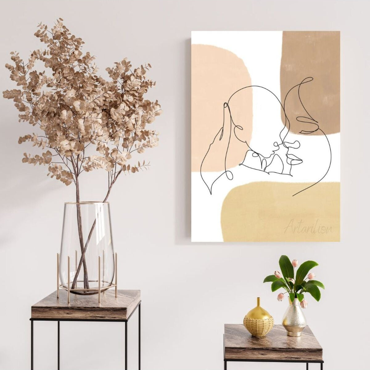 Kanvas Dijital HD Baskı Kanvas Tablo Anne ve Bebeği Çizgi Art Duvar Tablosu