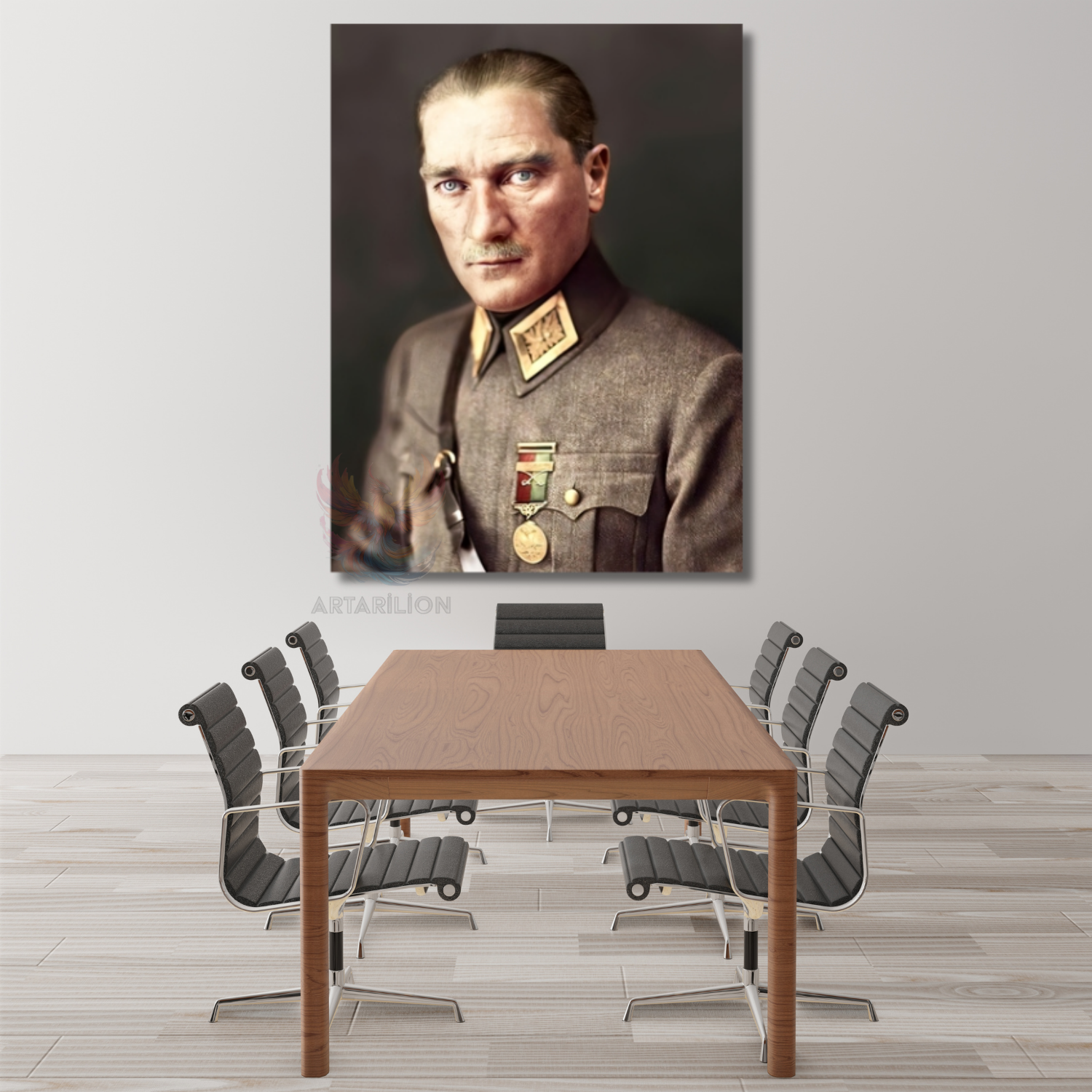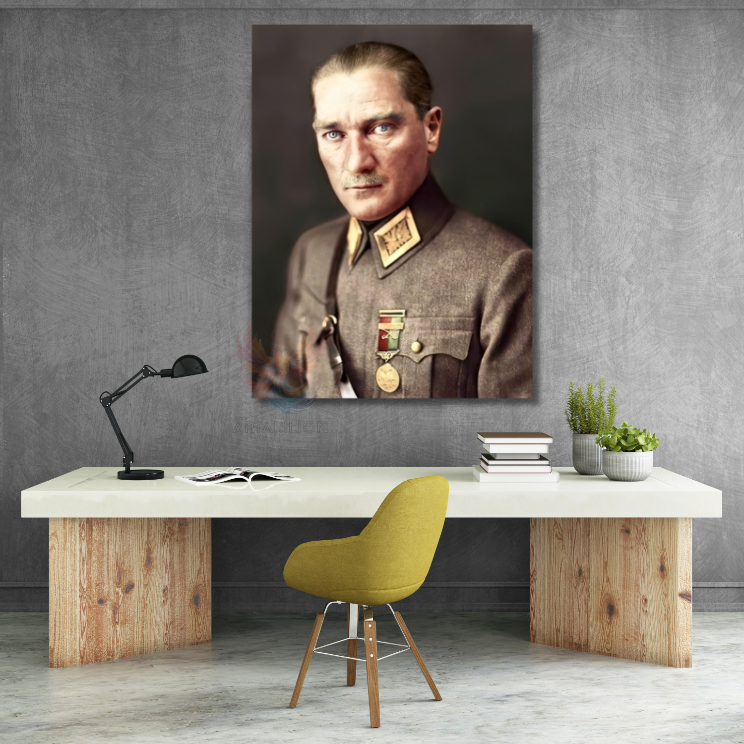 Uniformalı Atatürk Portresi Mustafa Kemal Atatürk Kanvas Tablo Modeli Ev Ofis Dekoru