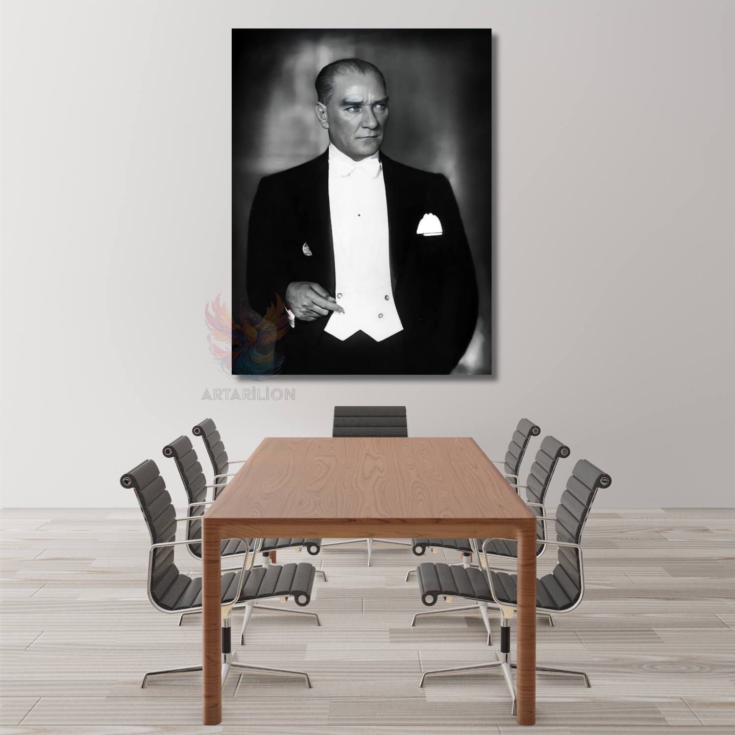Mustafa Kemal Atatürk Siyah Beyaz Kanvas Tablo Dikey Duvar Tablosu Ev Ofis Tablosu