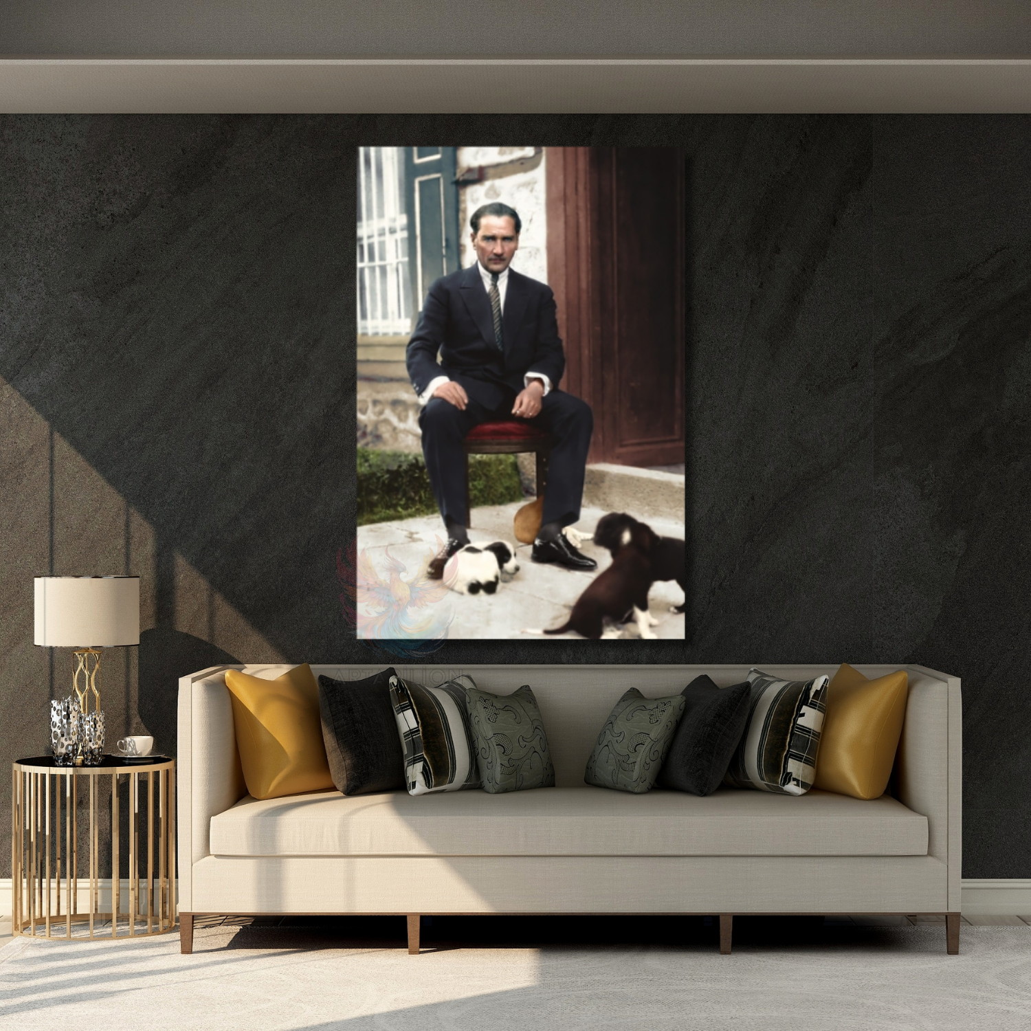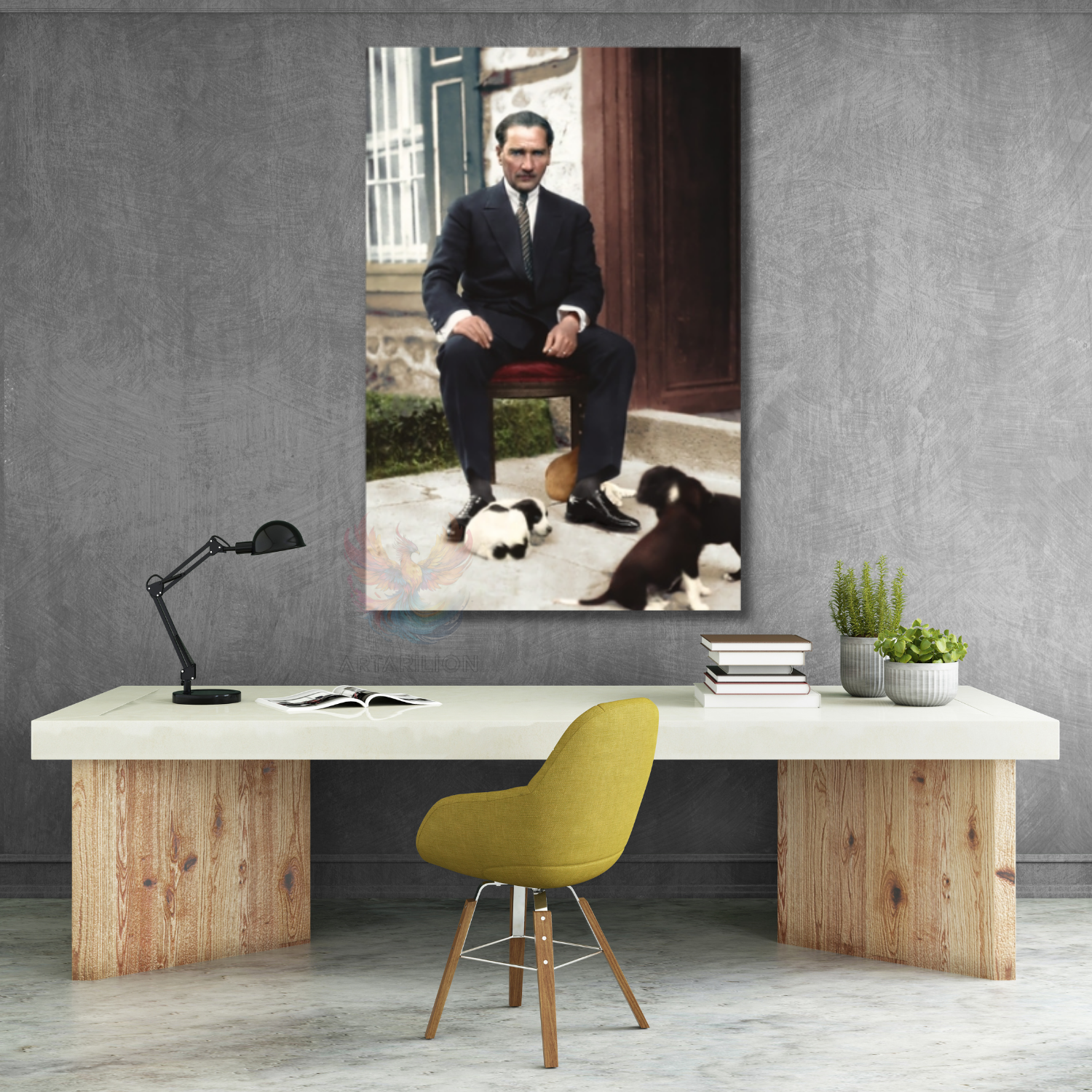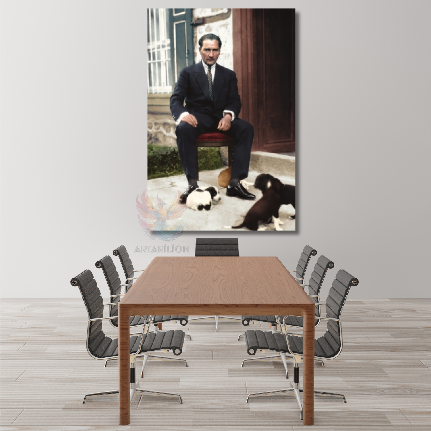 Takım Elbiseli Atatürk Kanvas Duvar Tablosu Dikey Tablo Ev Ofis Dekoru