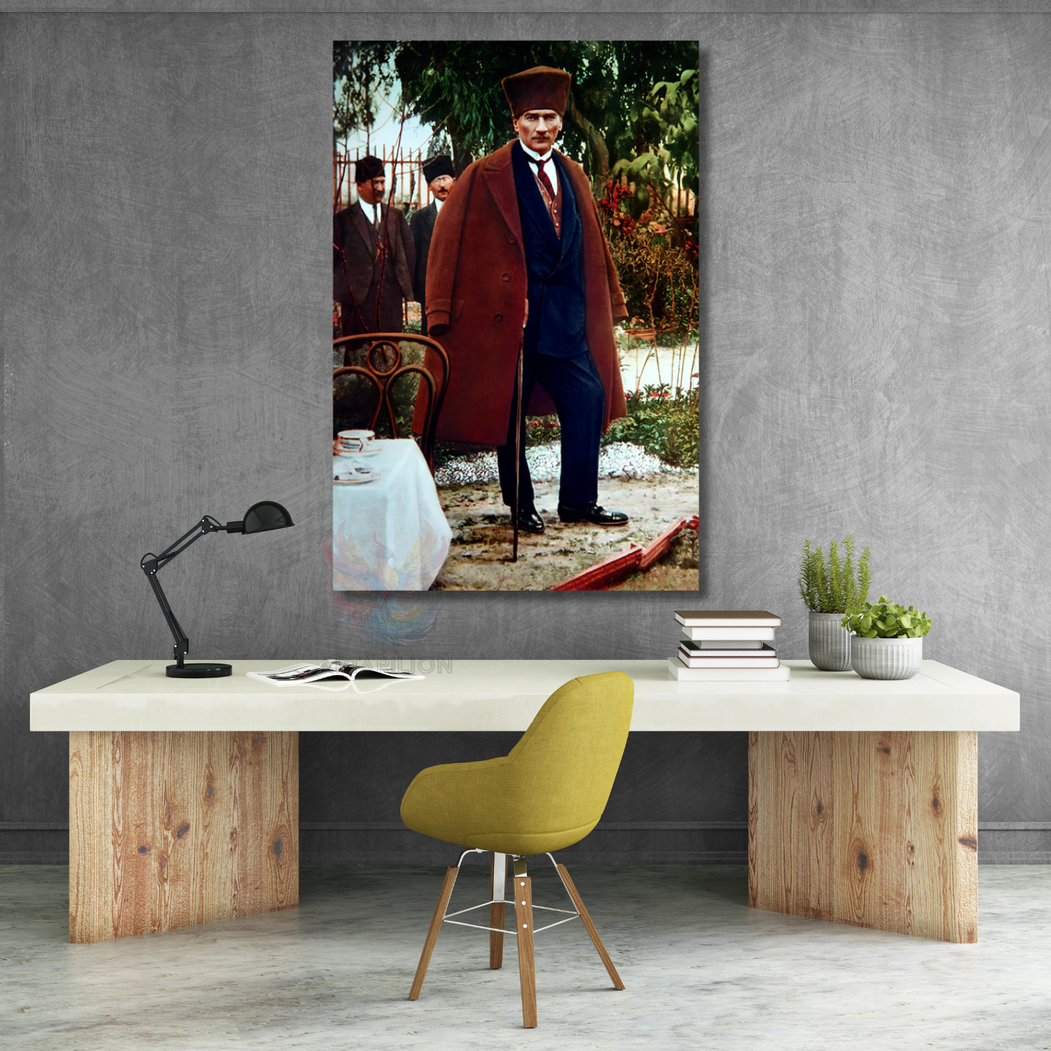 Ulu Önder Atatürk Kanvas Tablo Dikey Duvar Tablosu Renkli Atatürk Görseli Ev Ofis Dekoru