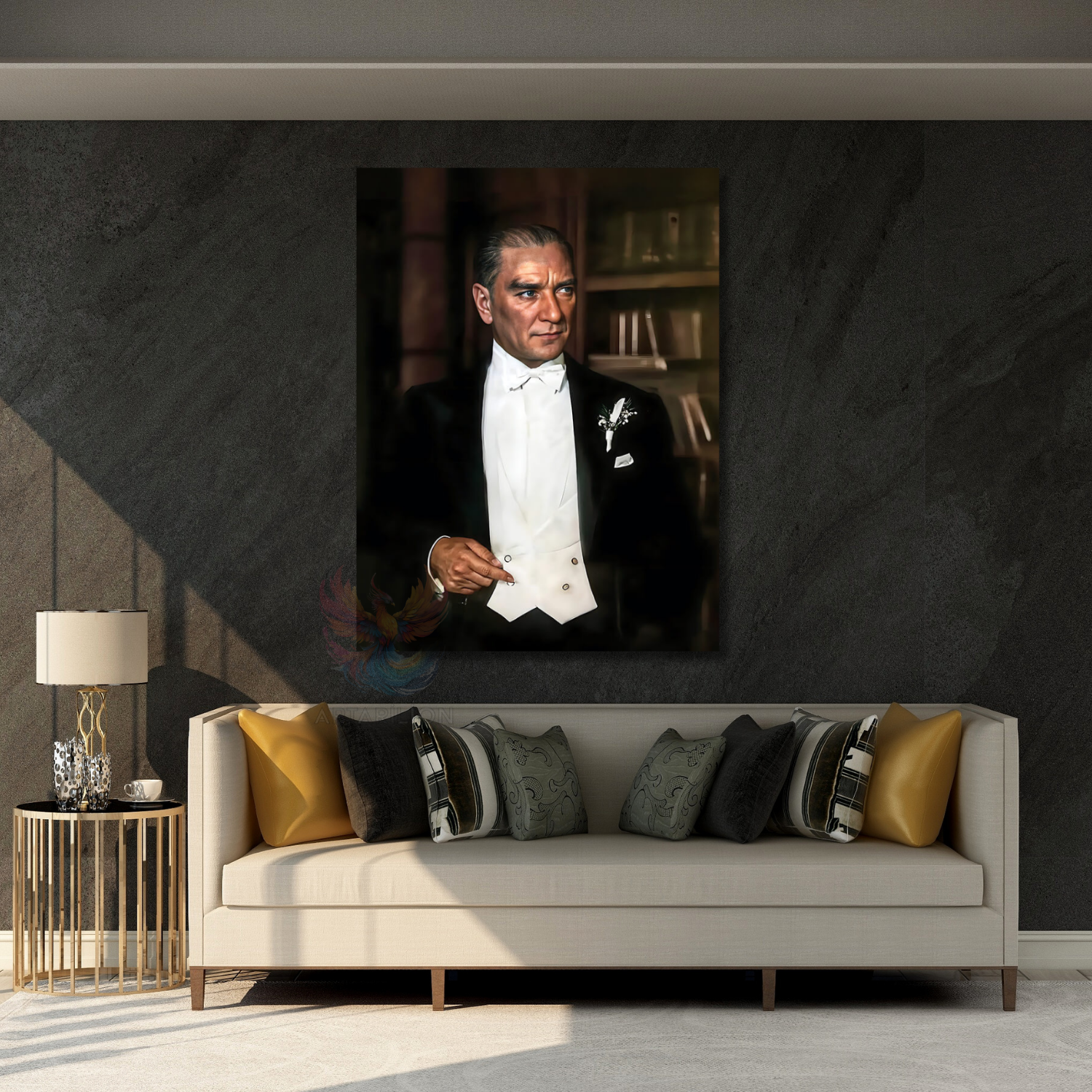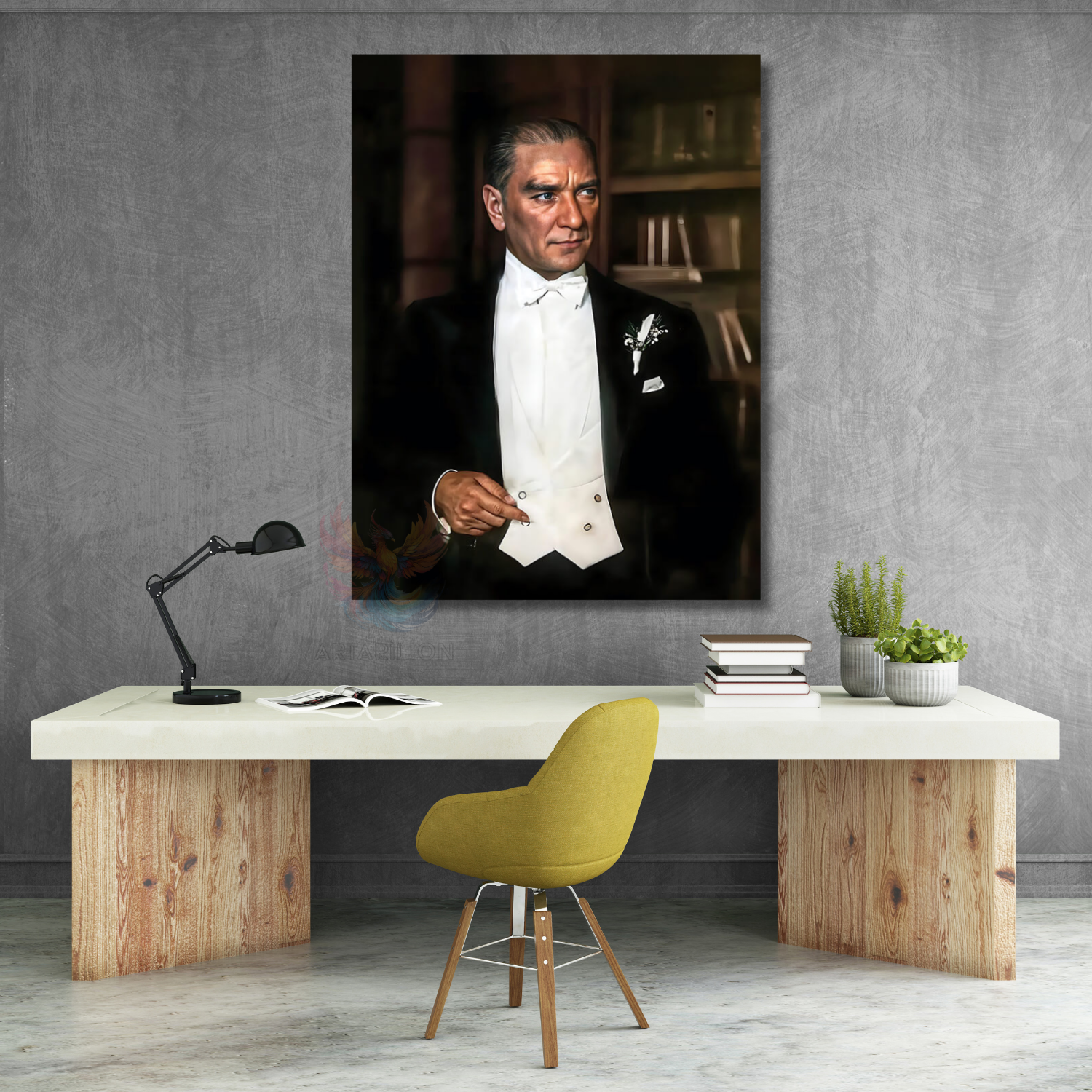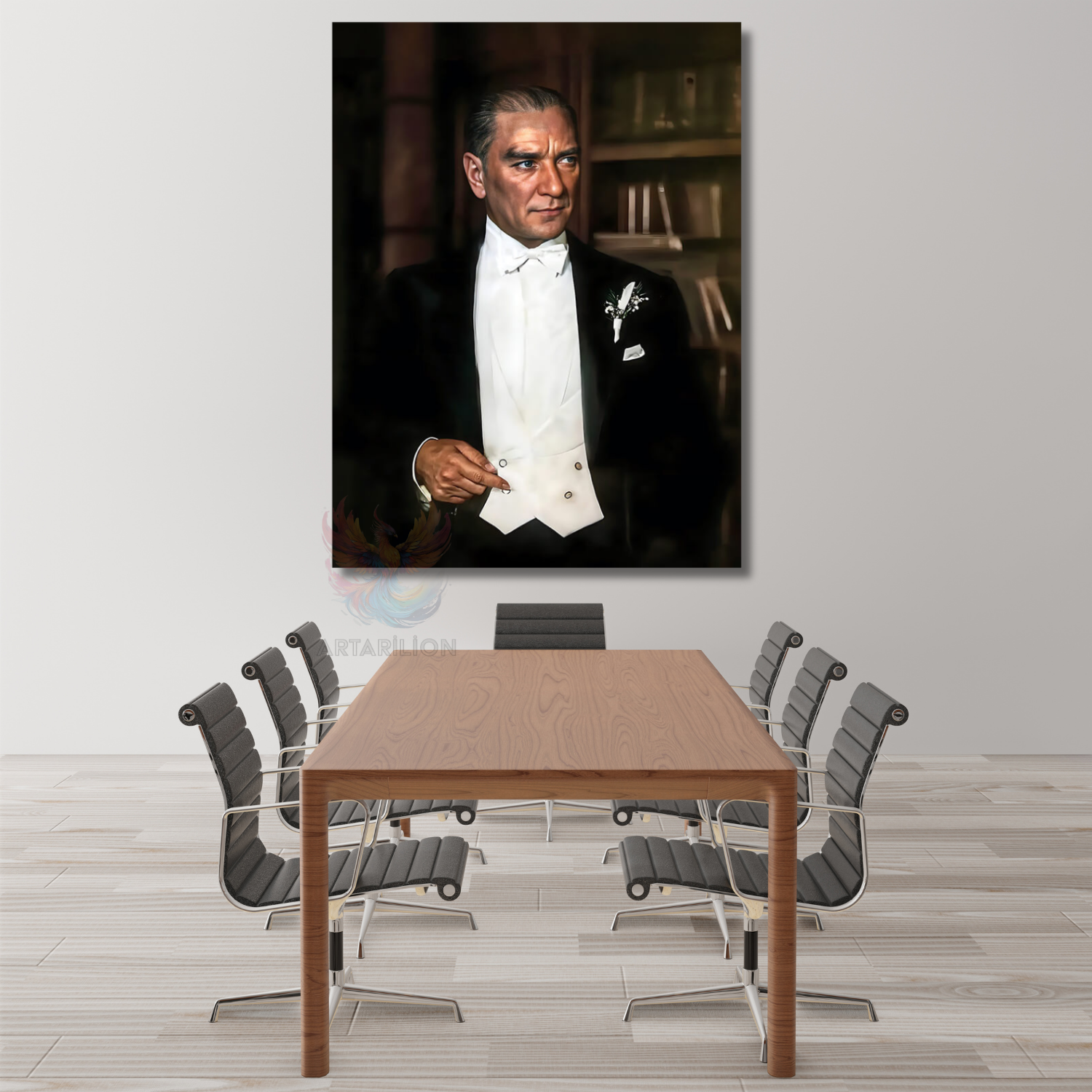 Karizmatik Atatürk Görseli Kanvas Tablo Modeli Dikey Duvar Tablosu Ev Ofis Dekoru