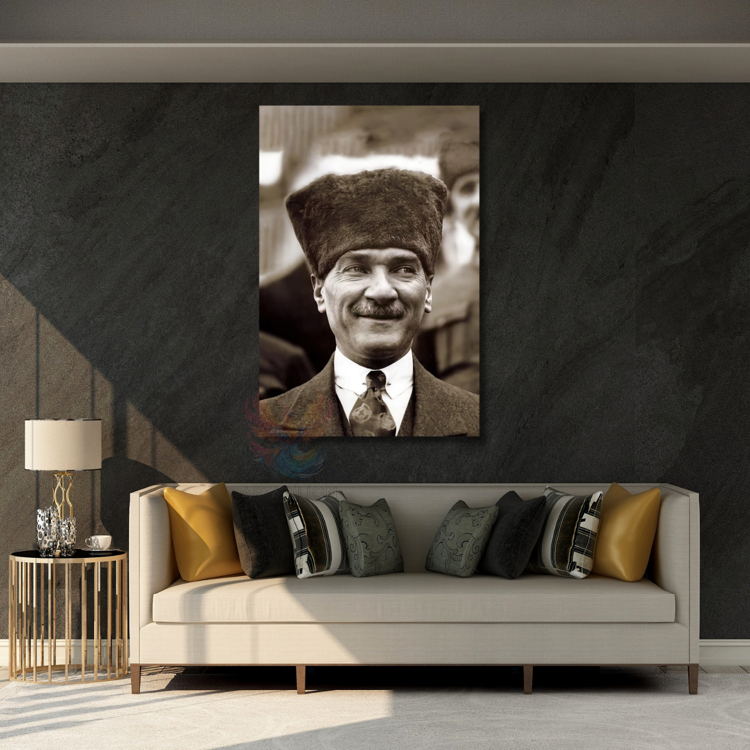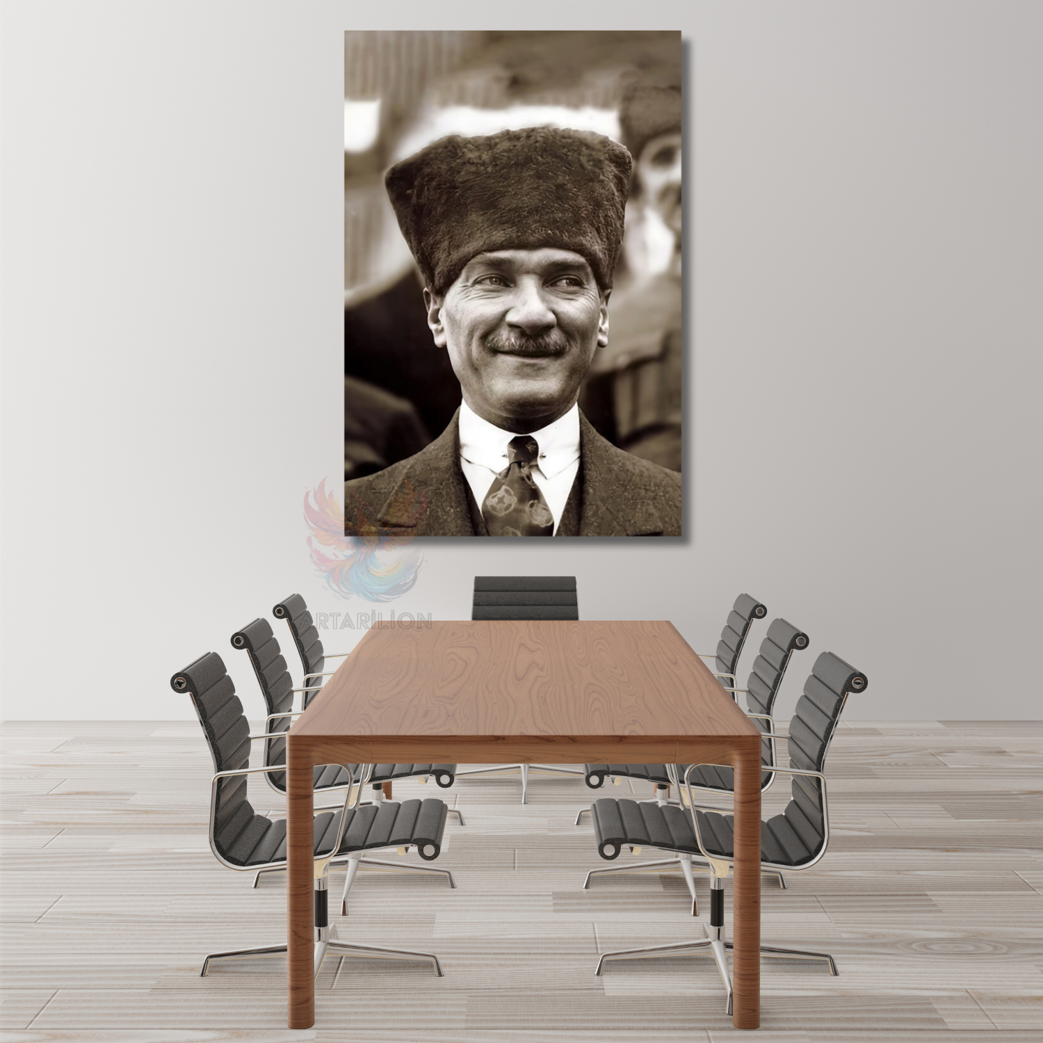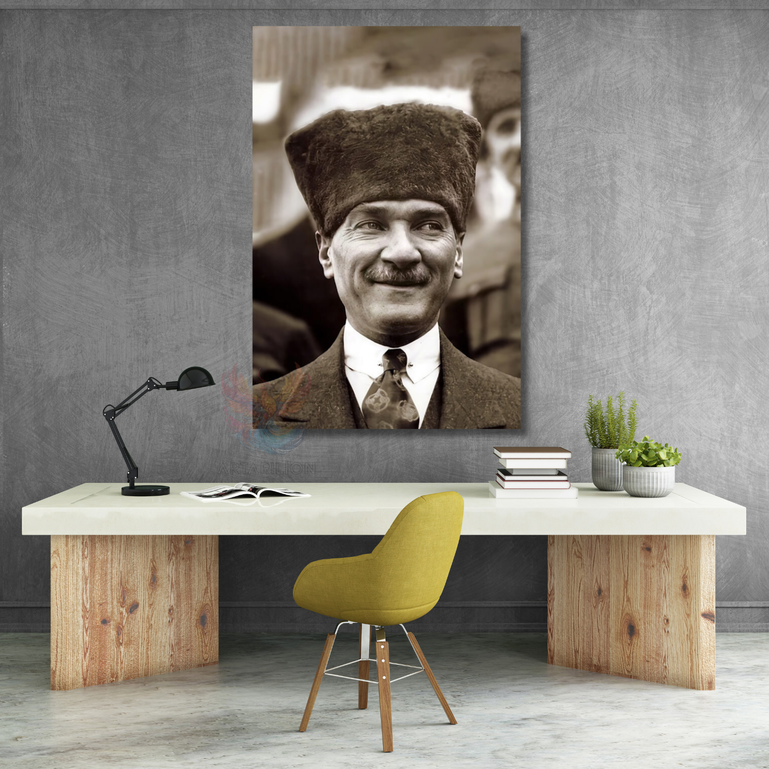 Siyah Beyaz Atatürk Görseli Dikey Duvar Tablosu Atatürk Portresi Ev Ofis Dekorasyonu