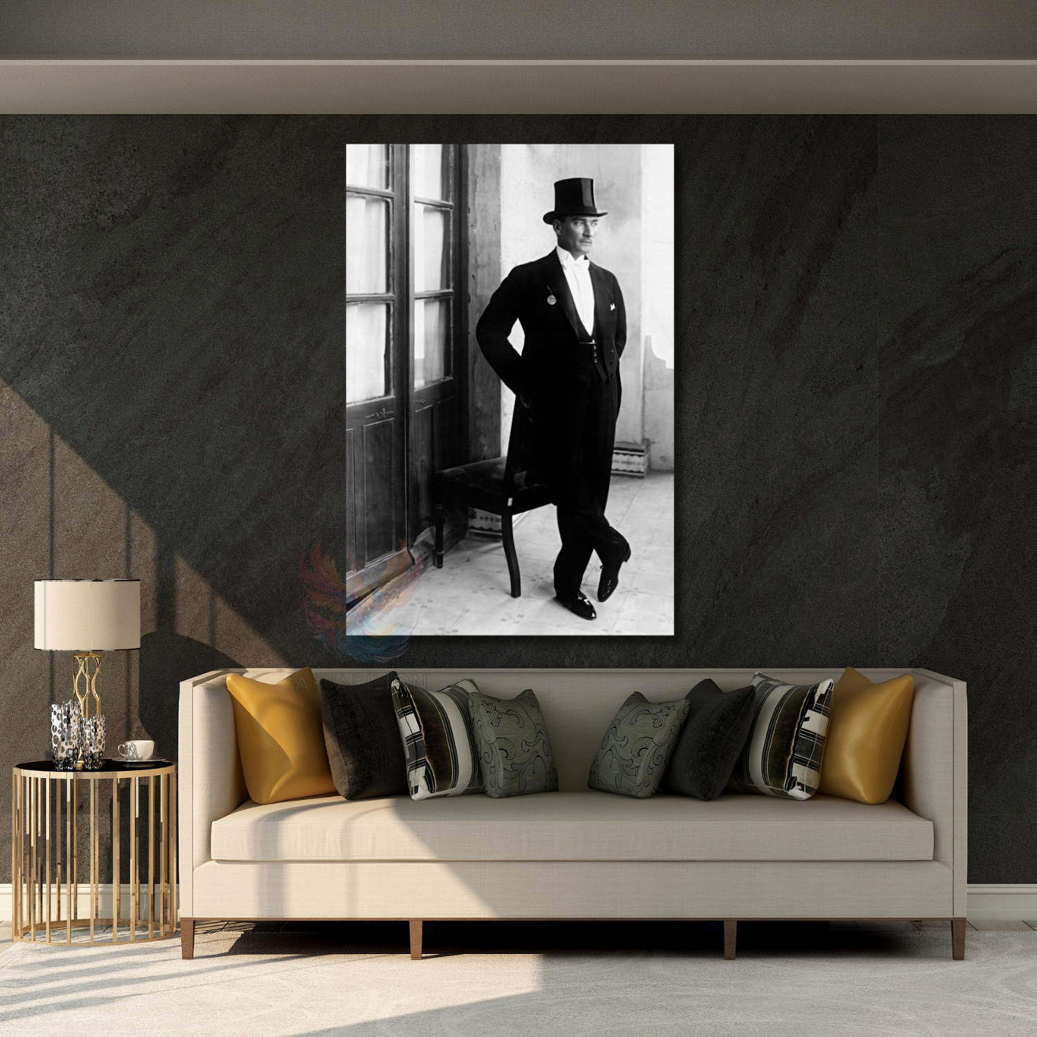 Kanvas Atatürk Tablo Modeli Şapkalı Atatürk Görseli Dikey Duvar Tablosu