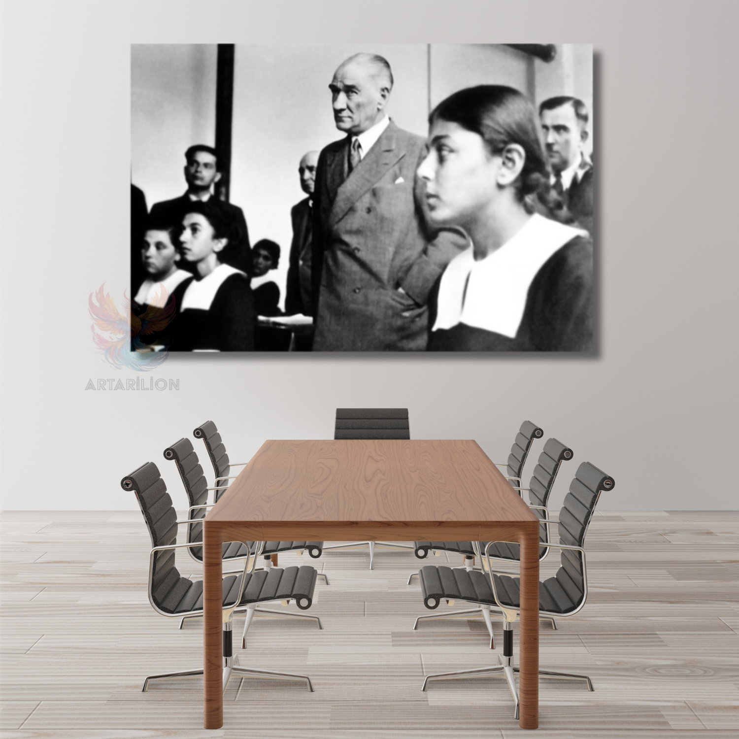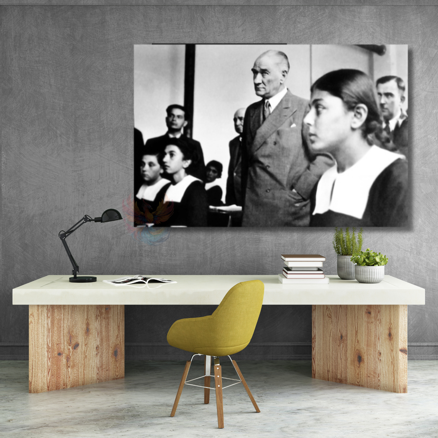Baş Öğretmen Atatürk Kanvas Tablo Yatay Duvar Tablosu Okul Sınıf Tablo Modeli