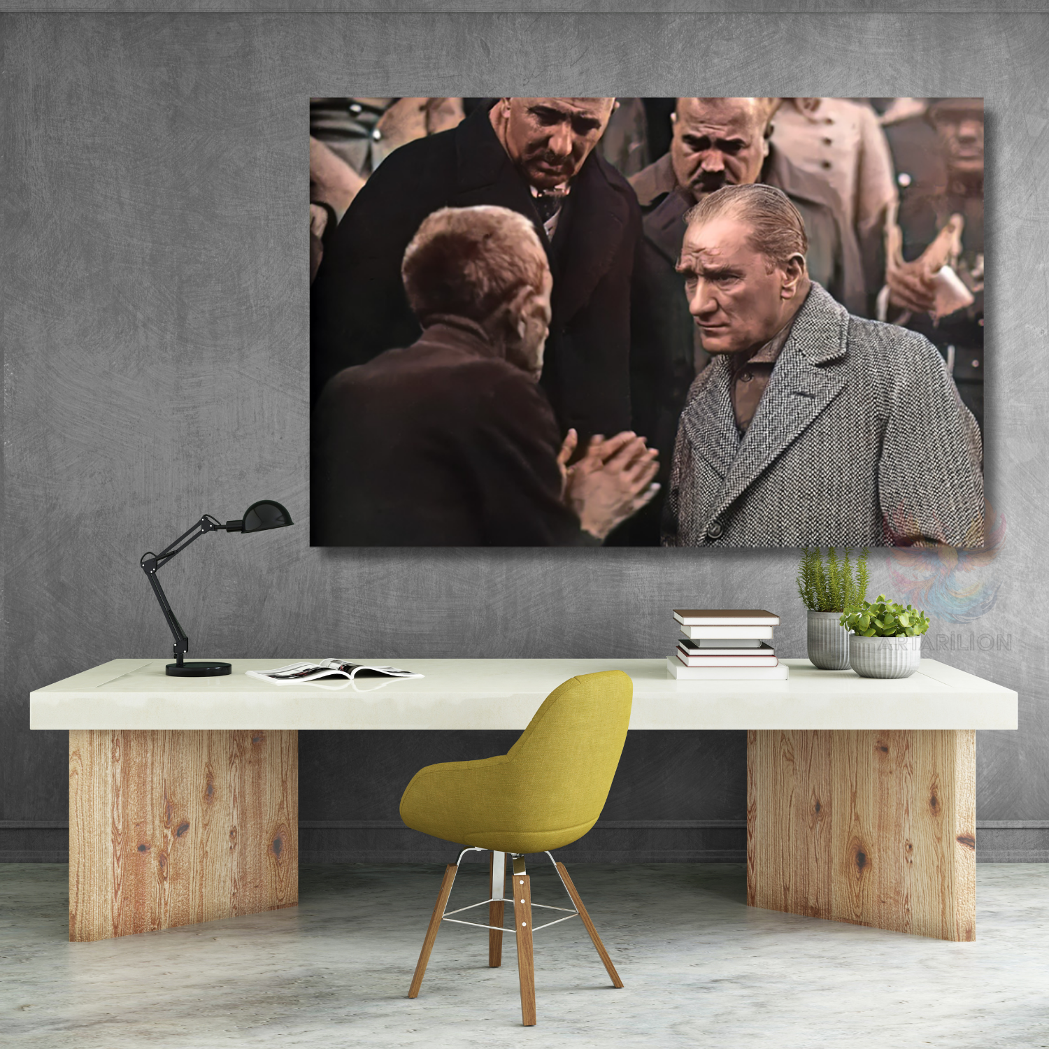 Atatürk ve Halk Temalı Renkli Kanvas Tablo Modeli Yatay Duvar Tablosu