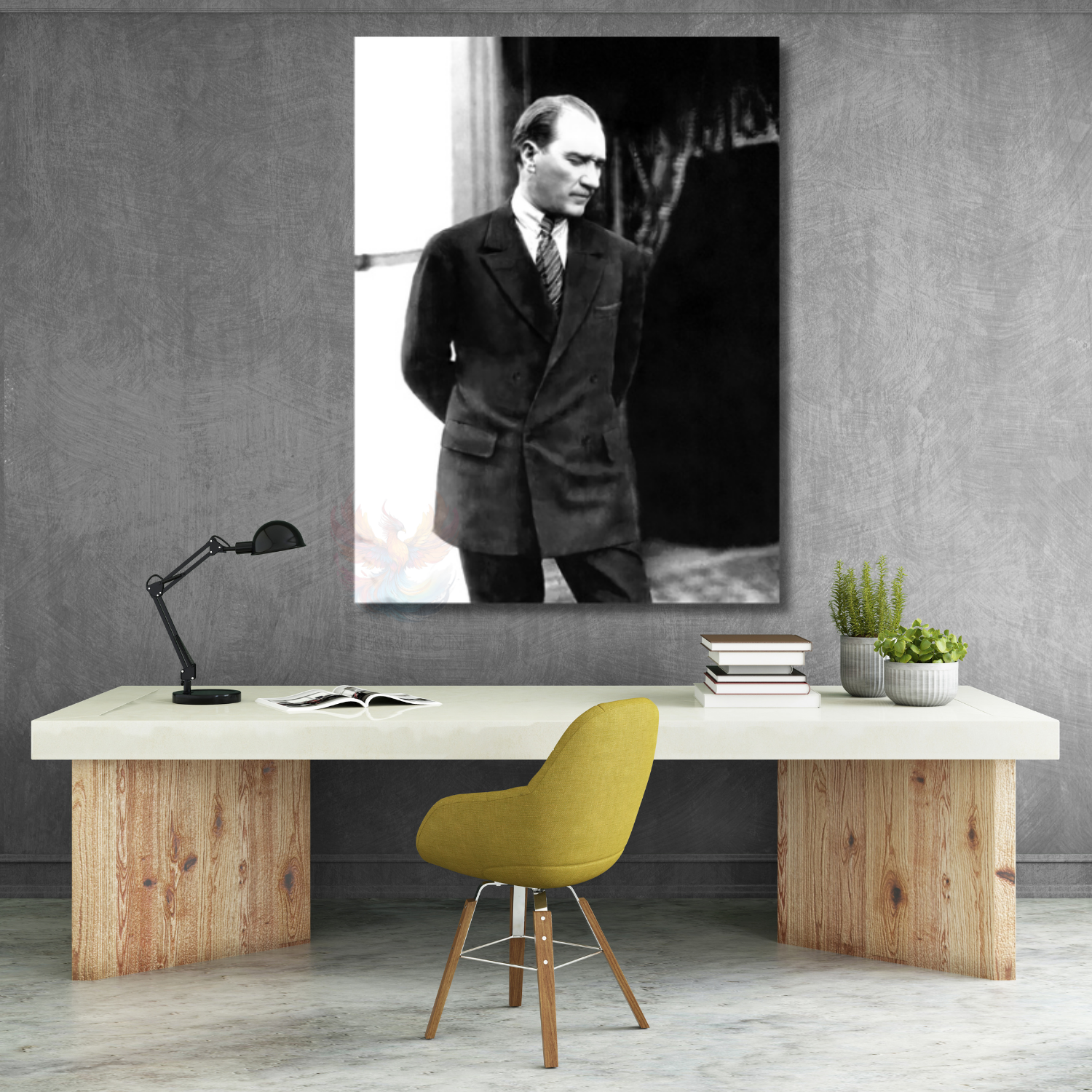 Kemal Atatürk Kanvas Tablo Siyah Beyaz Atatürk Tablosu Dikey Duvar Tablo Ev Ofis Dekoru