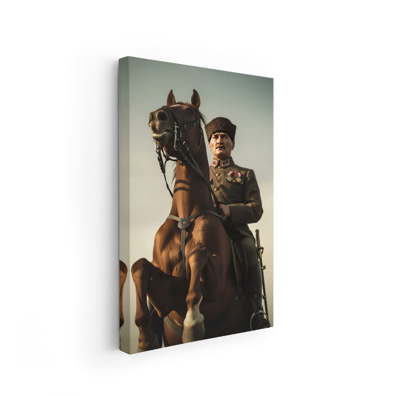 Kanvas Dikey Duvar Tablosu Kanvas Atatürk At Üstünde Ev Ofis Salon Modern Duvar Tablosu