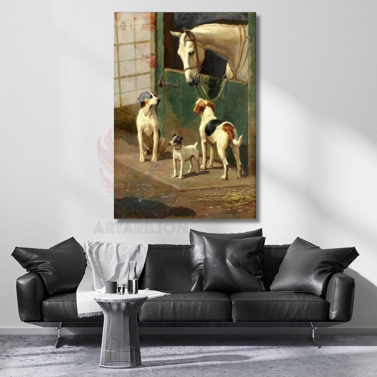 Çiftlikteki At ve Köpekler Kanvas Duvar Tablosu Yağlı Boya Görünümlü Tablo