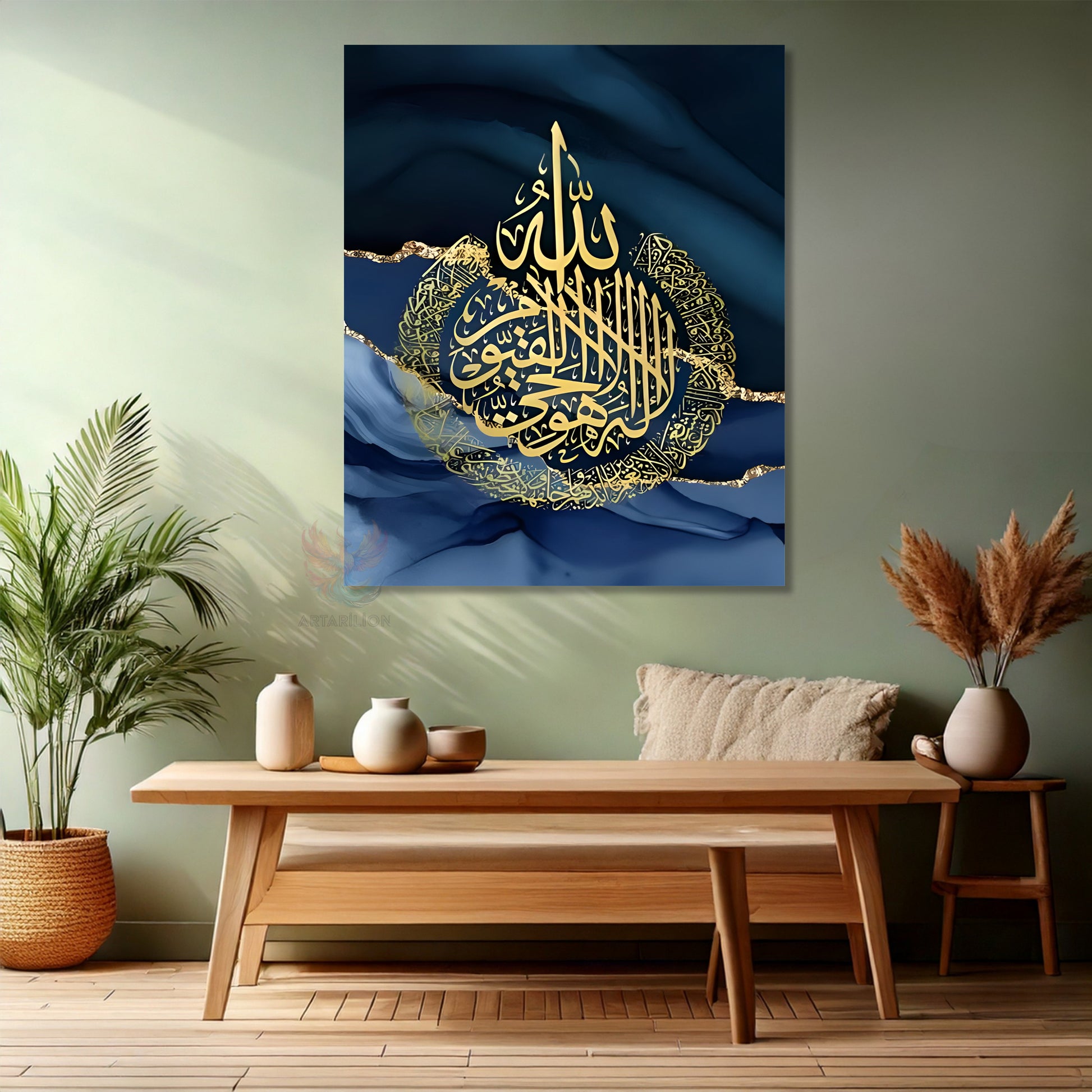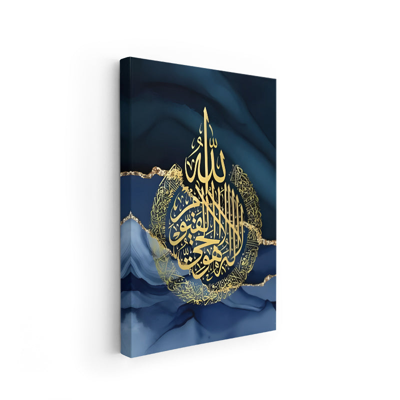 Kanvas Dikey Duvar Tablosu Kanvas Ayet El Kursi Mermer Desenli Ev Ofis Salon Modern Duvar Tablosu