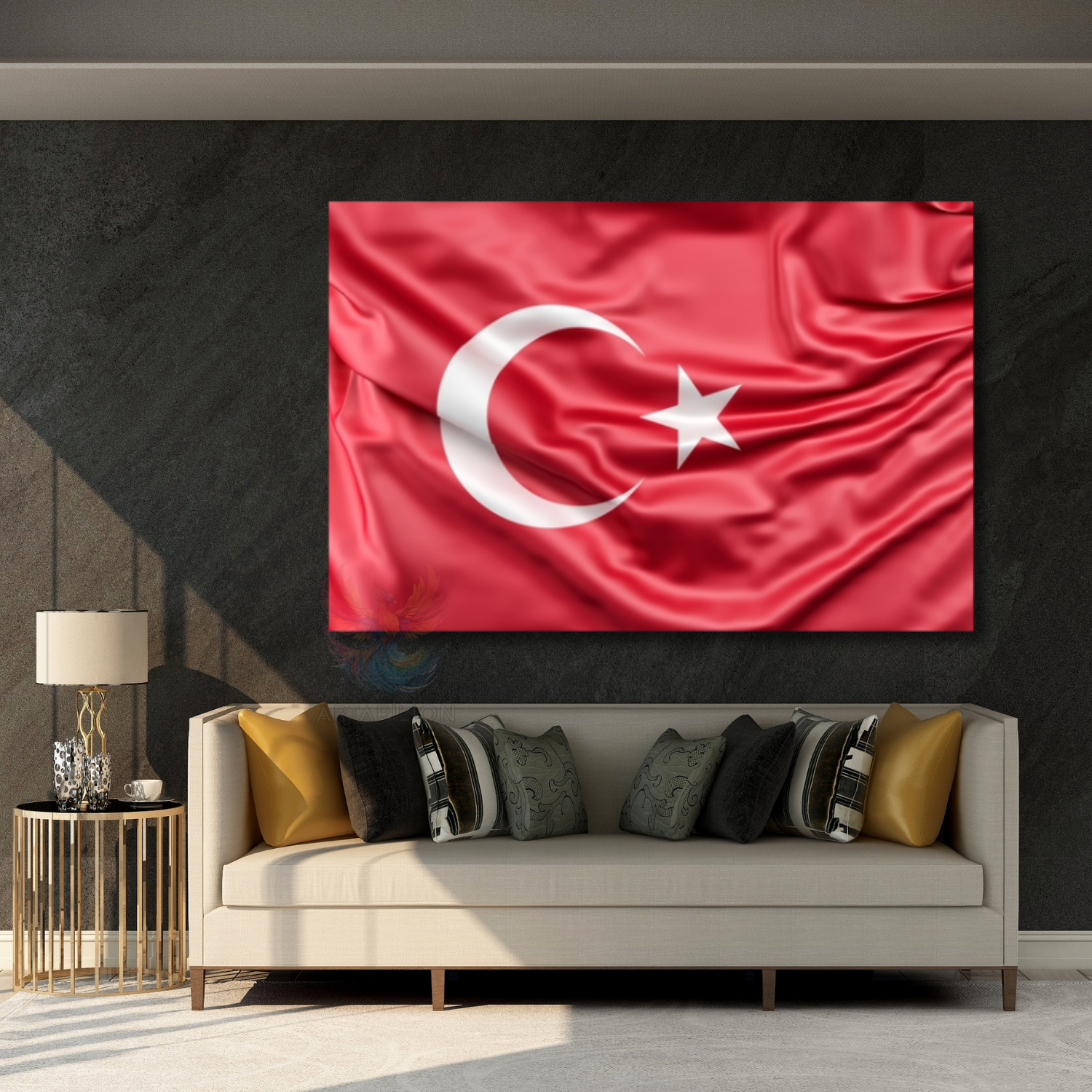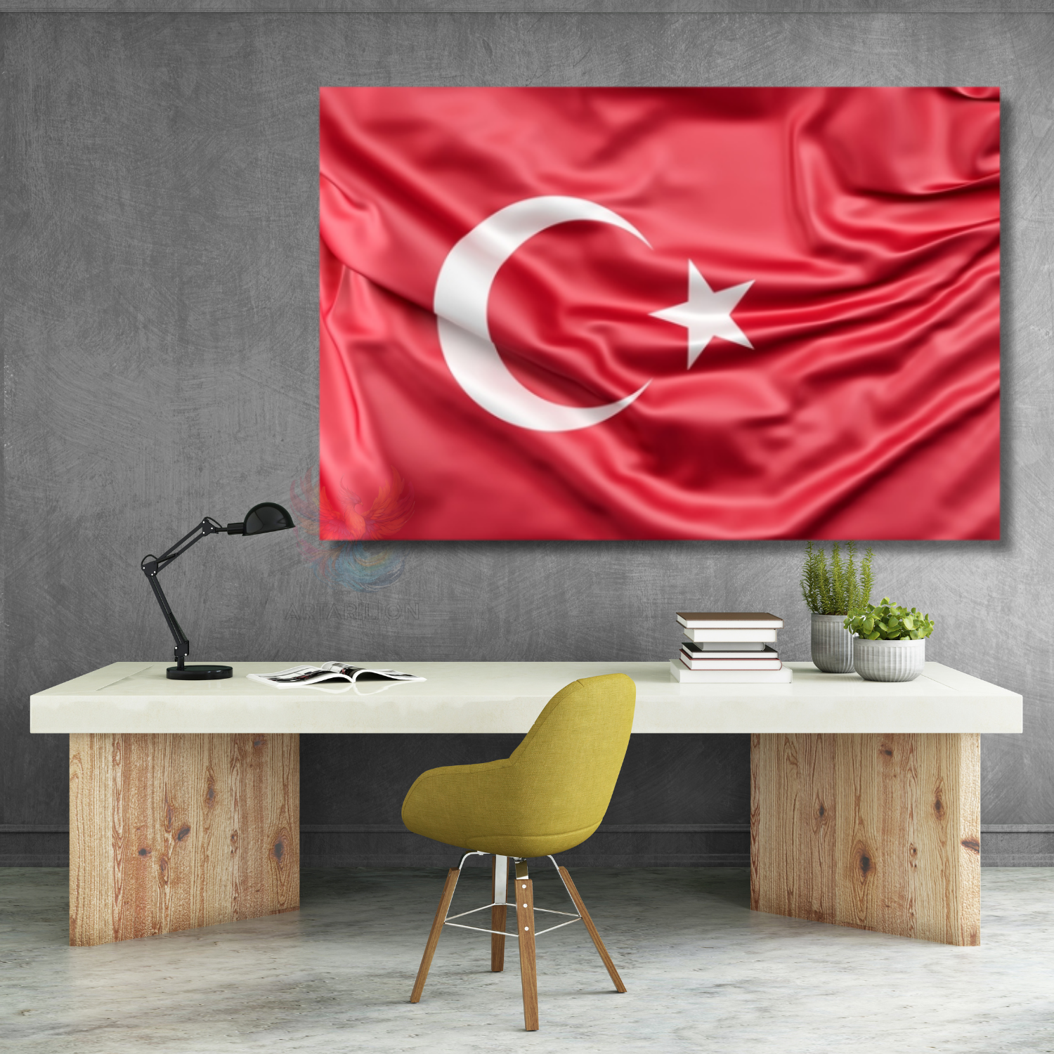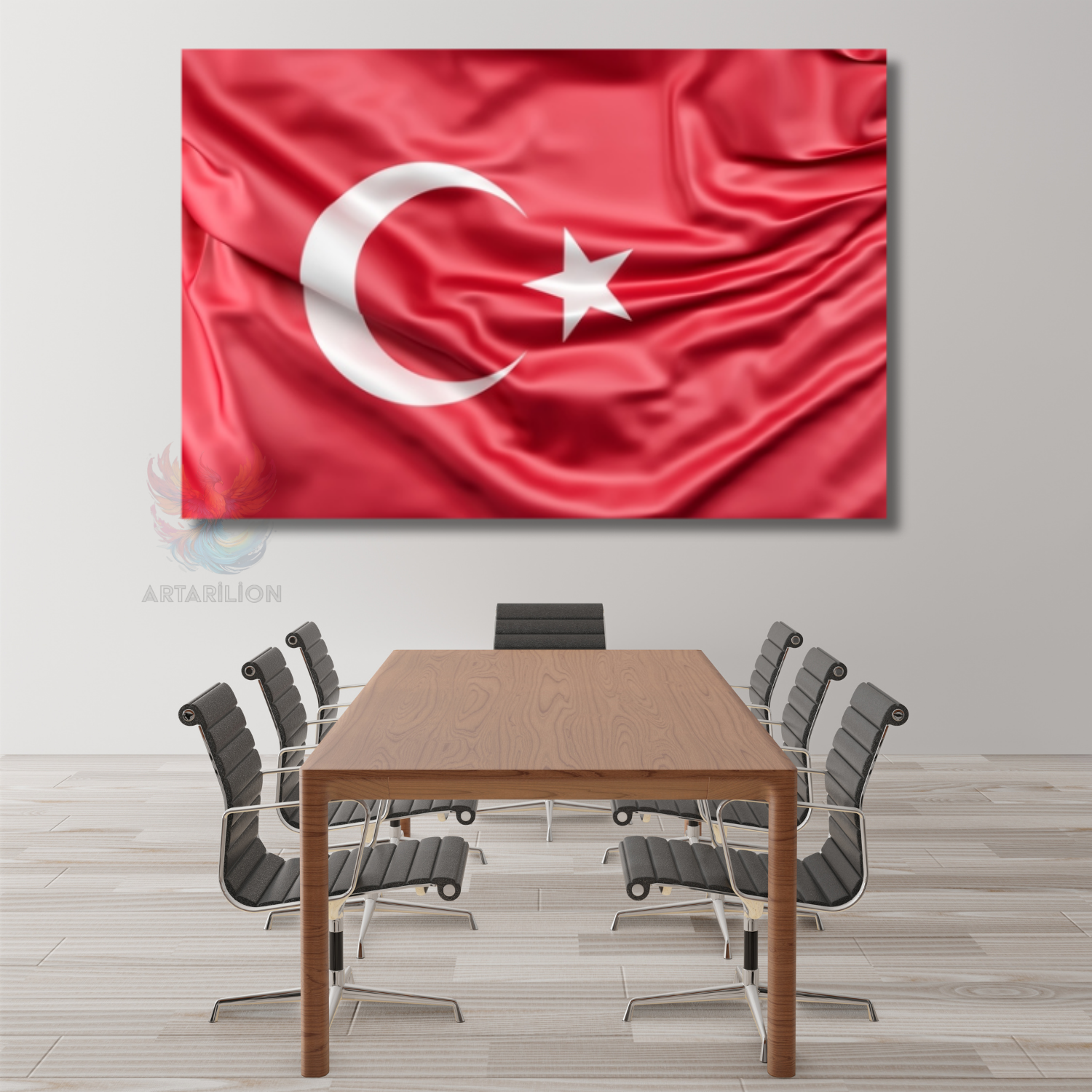 Ay Yıldız Türk Bayrağı Kanvas Tablo Yatay Duvar Tablosu Ev Ofis Okul Tablosu