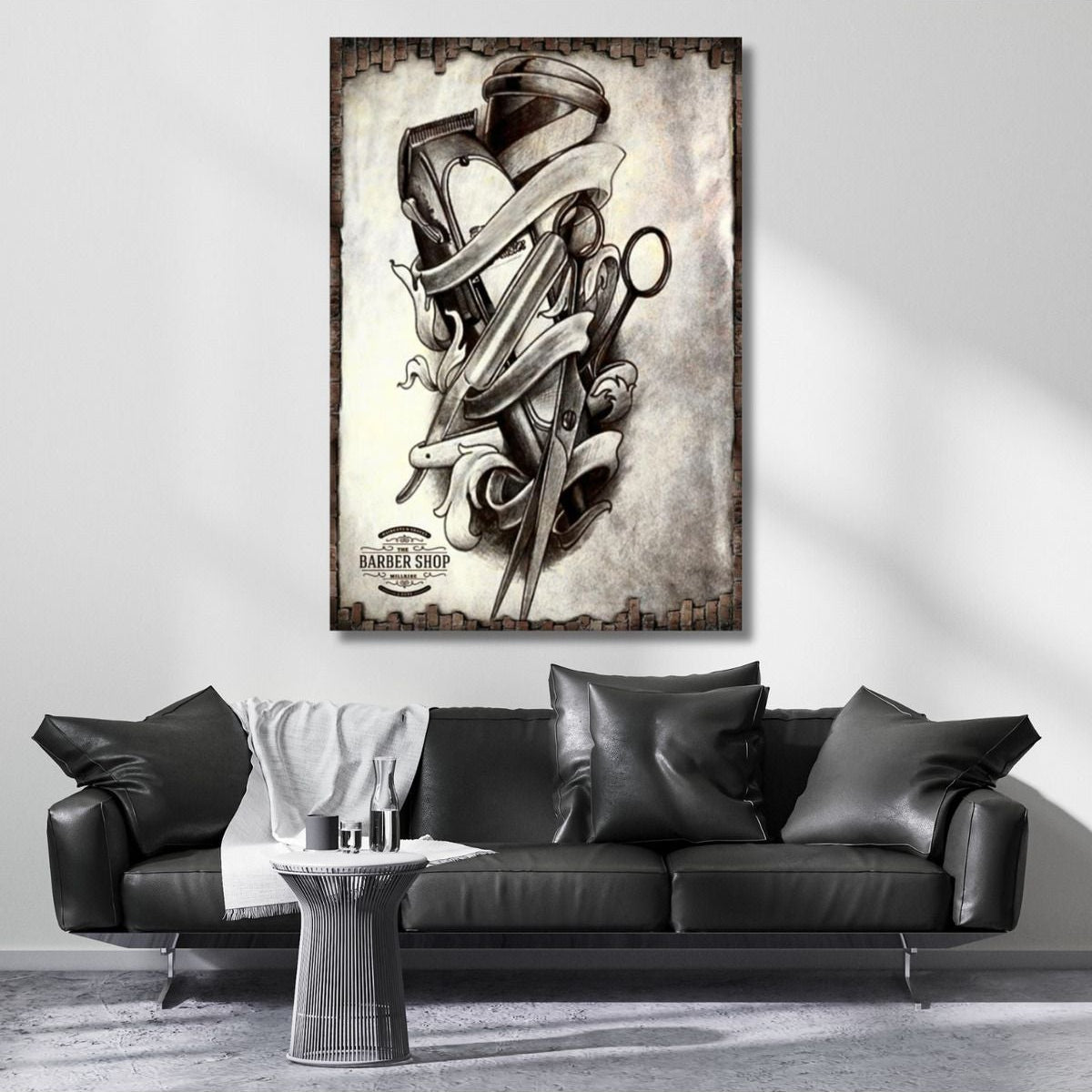 Kanvas Berber Temalı Tablo Kuaför Ofis Tablosu Kuaför Salonu Tablo