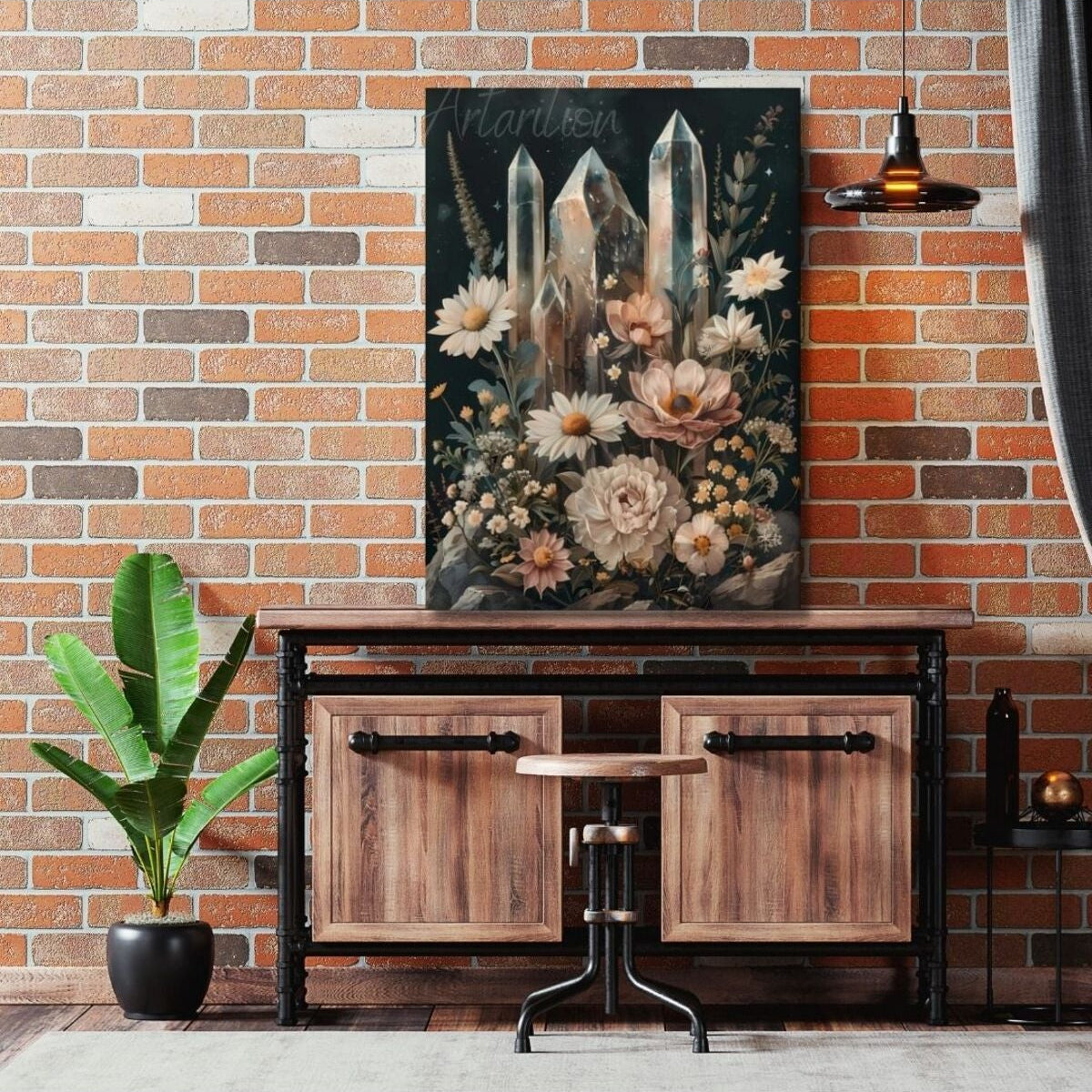 Kanvas Dijital HD Baskı Kanvas Tablo Çiçekler İçinde Kristaller Duvar Tablosu