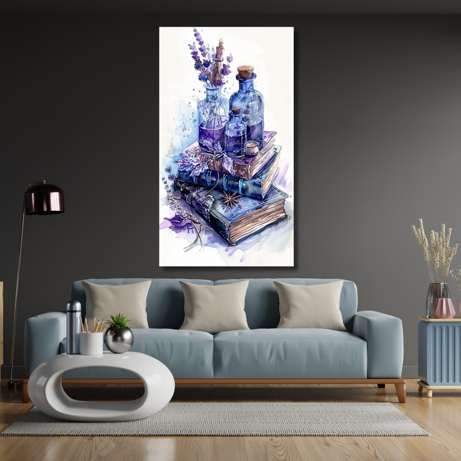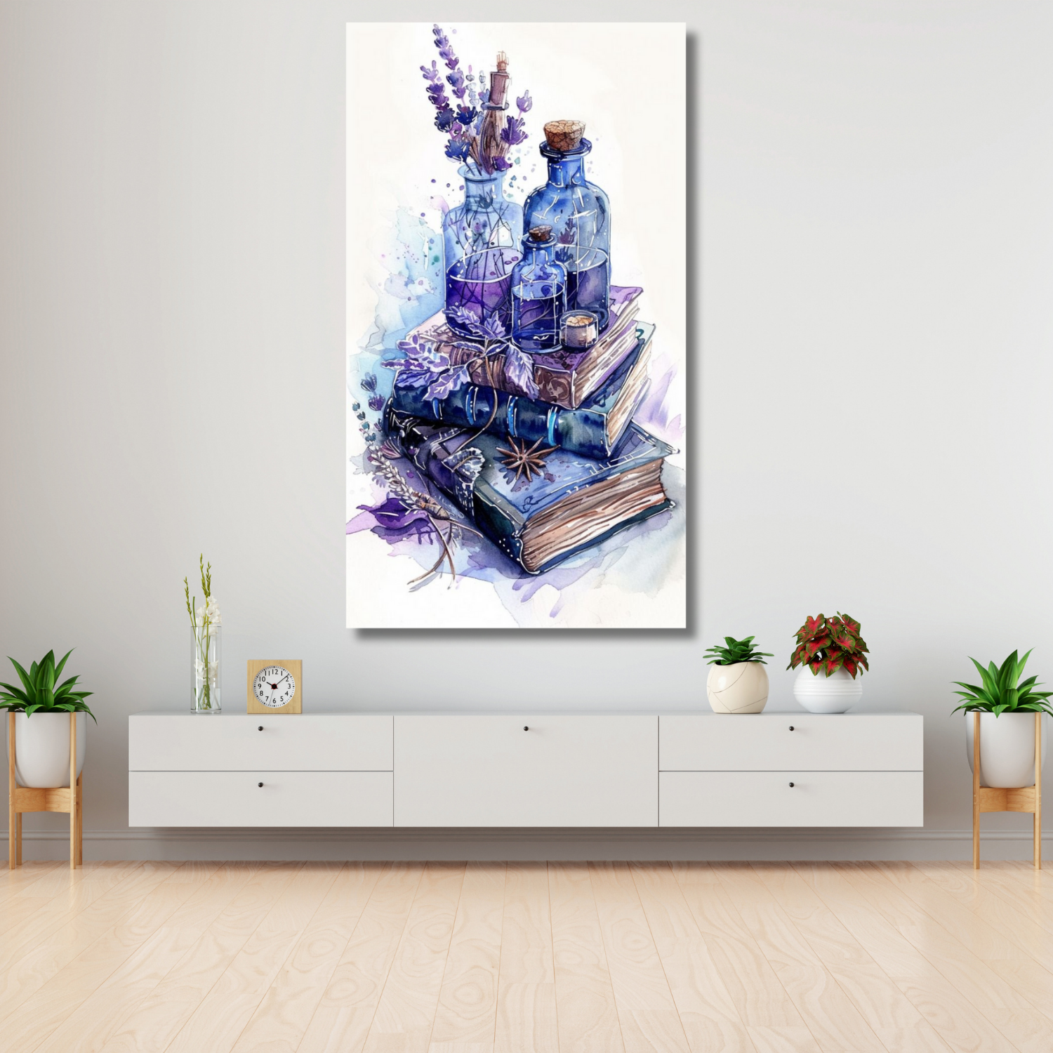 Kanvas Tablo Sulu Boya Görünümlü Kitap ve Çiçek Temalı Hd Dijital Baskı Kanvas Tablo
