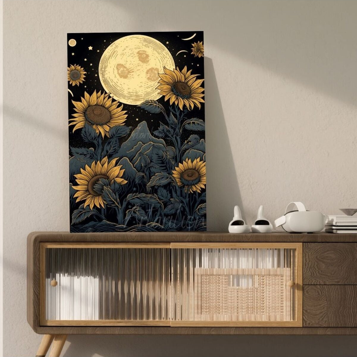 Kanvas Dijital HD Baskı Kanvas Tablo Dolunay Ayçiçeği Günebakan Duvar Tablosu