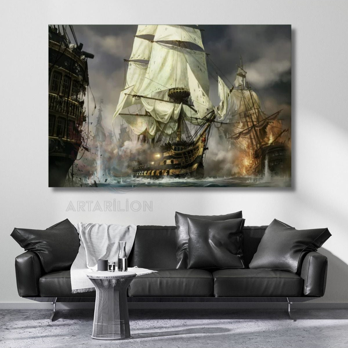 Gemi Savaşları Kanvas Tablo Klasik Salon Tablosu Dijital Baskı Tablo