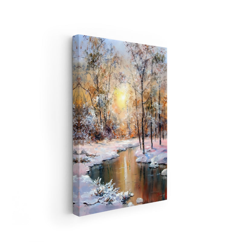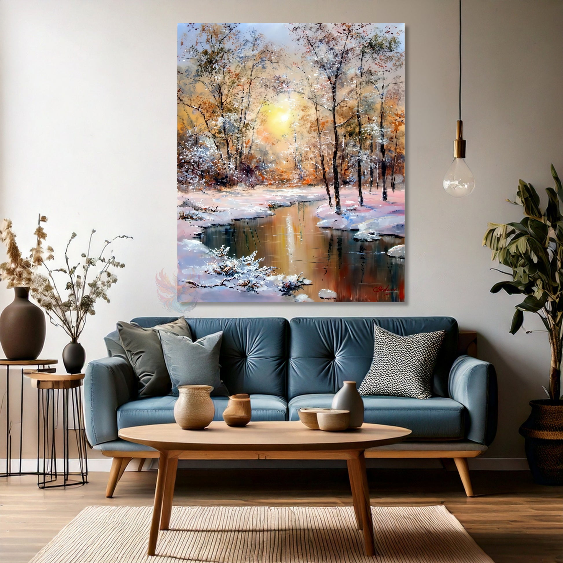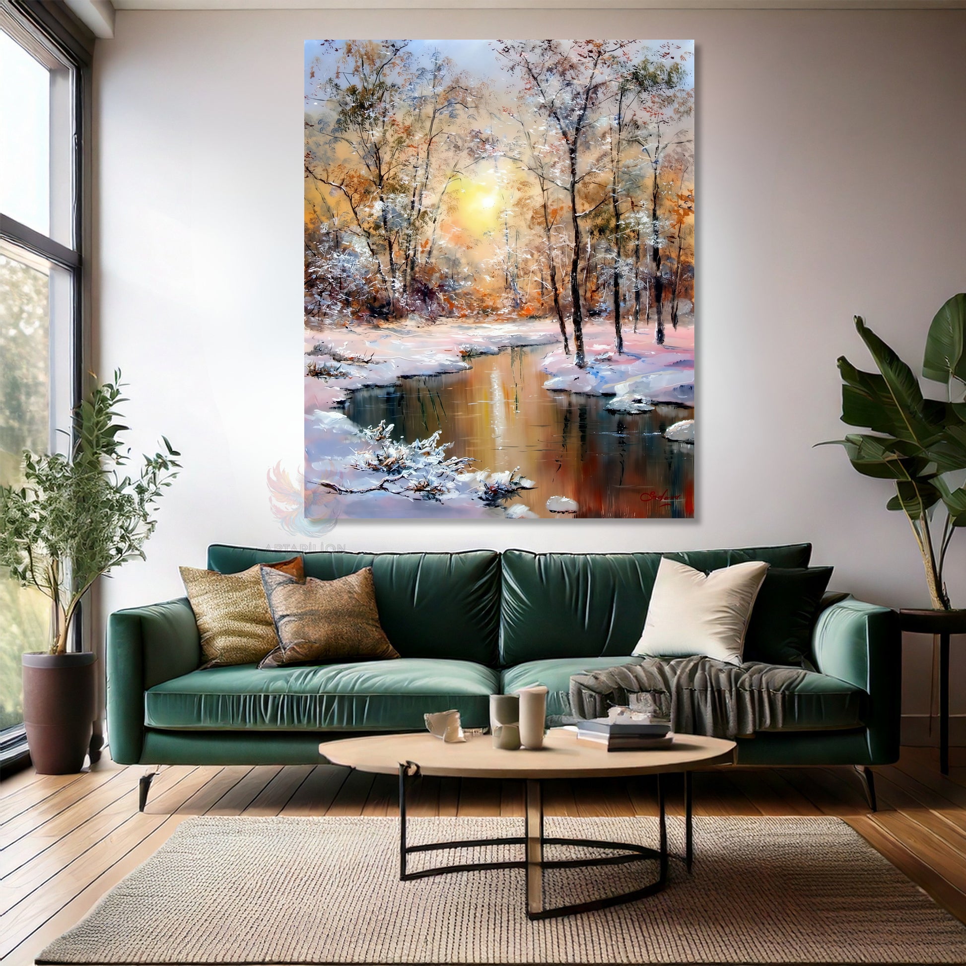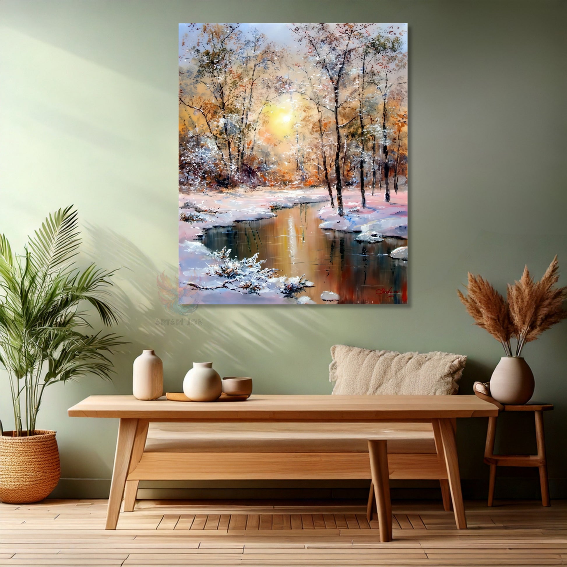 Kanvas Dikey Duvar Tablosu Kanvas Göl ve Kar Ev Ofis Salon Modern Duvar Tablosu