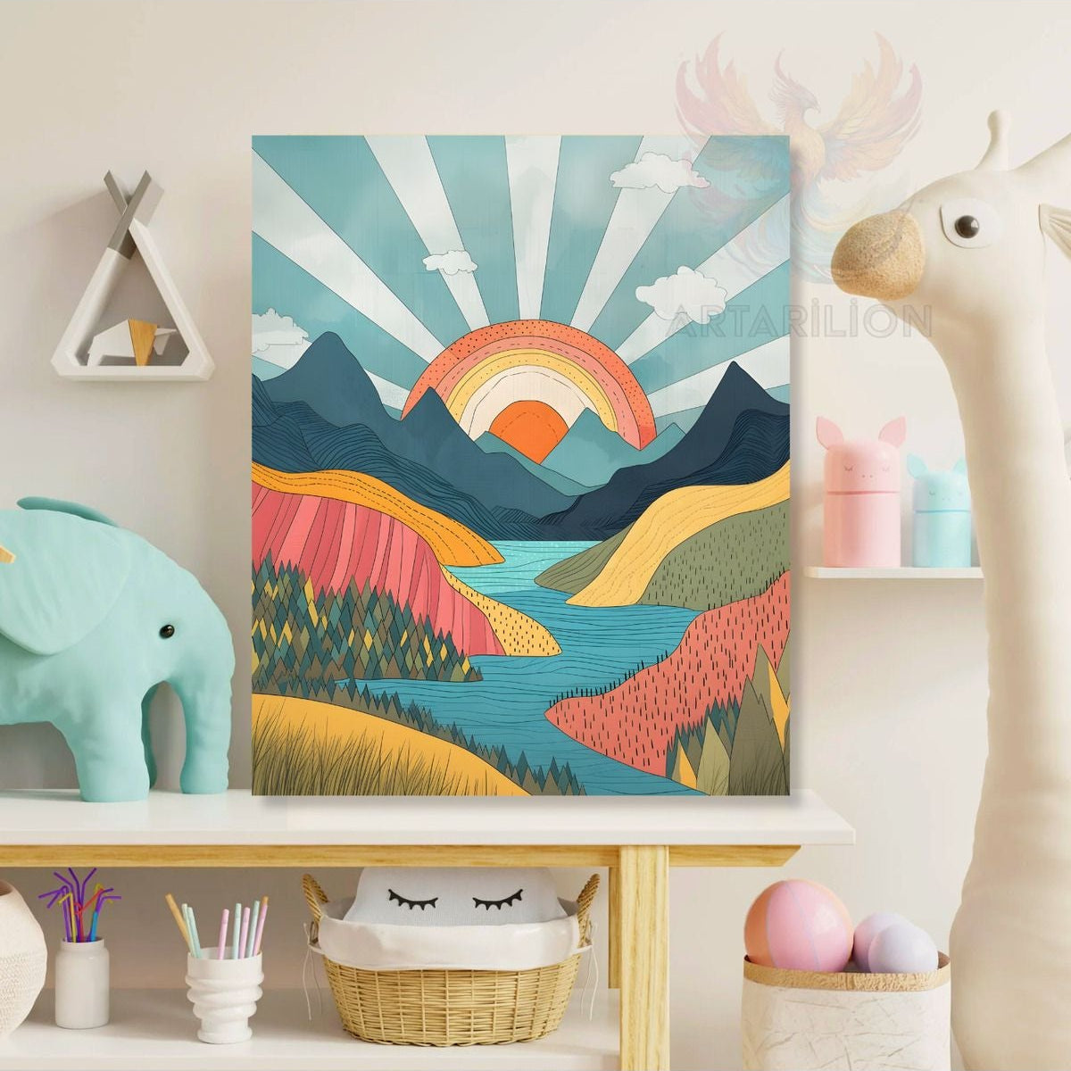 Kanvas Güneş ve Doğa Desenli Baskı Tablo Oyun Odası Tablosu Duvar Dekoru Çocuk Odası Tablosu