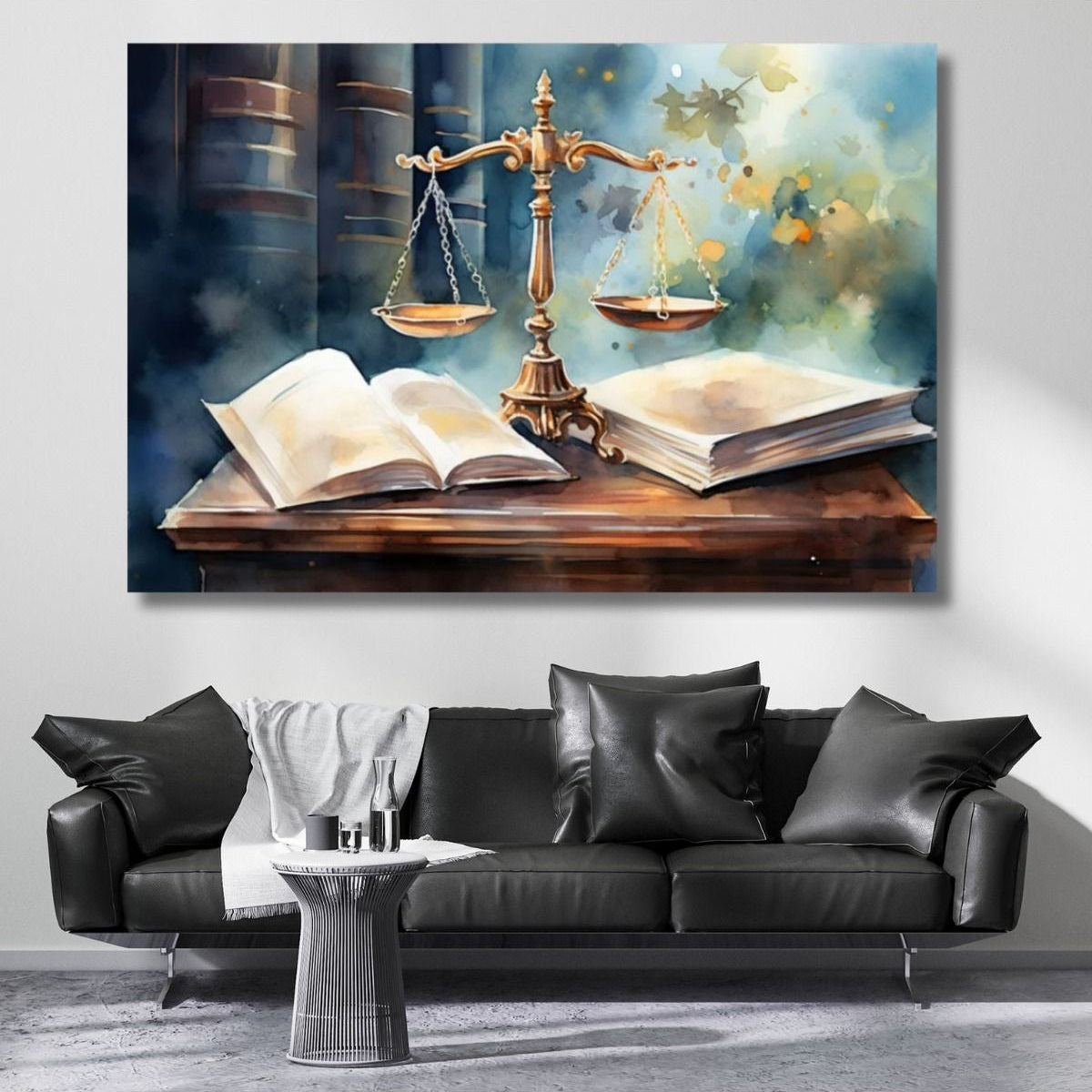 Kitap ve Terazi Hukuk Adalet Kanvas Tablo Modeli Ofis Tablosu