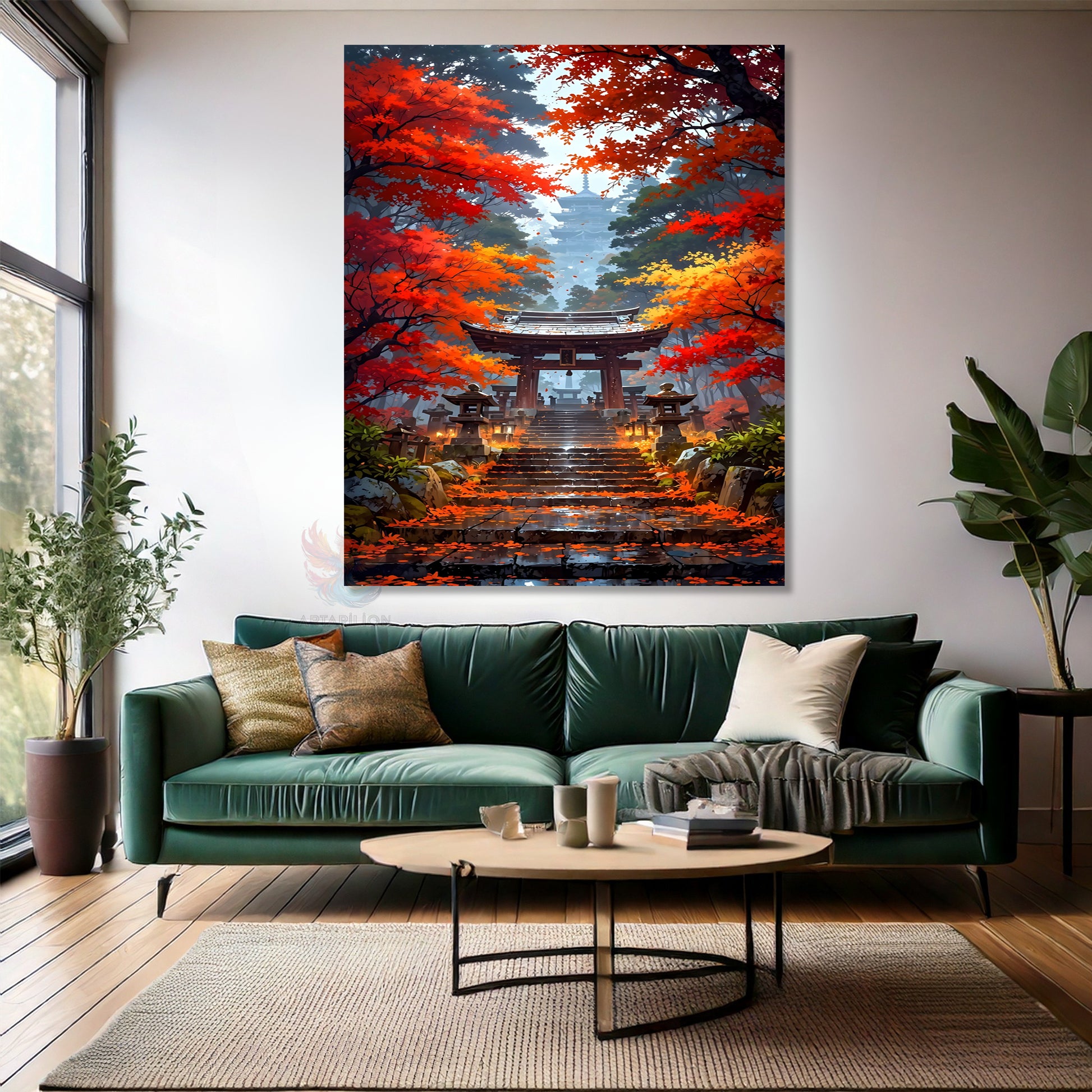 Kanvas Dikey Duvar Tablosu Kanvas Japonya Sonbahar Kapılar Ev Ofis Salon Modern Duvar Tablosu