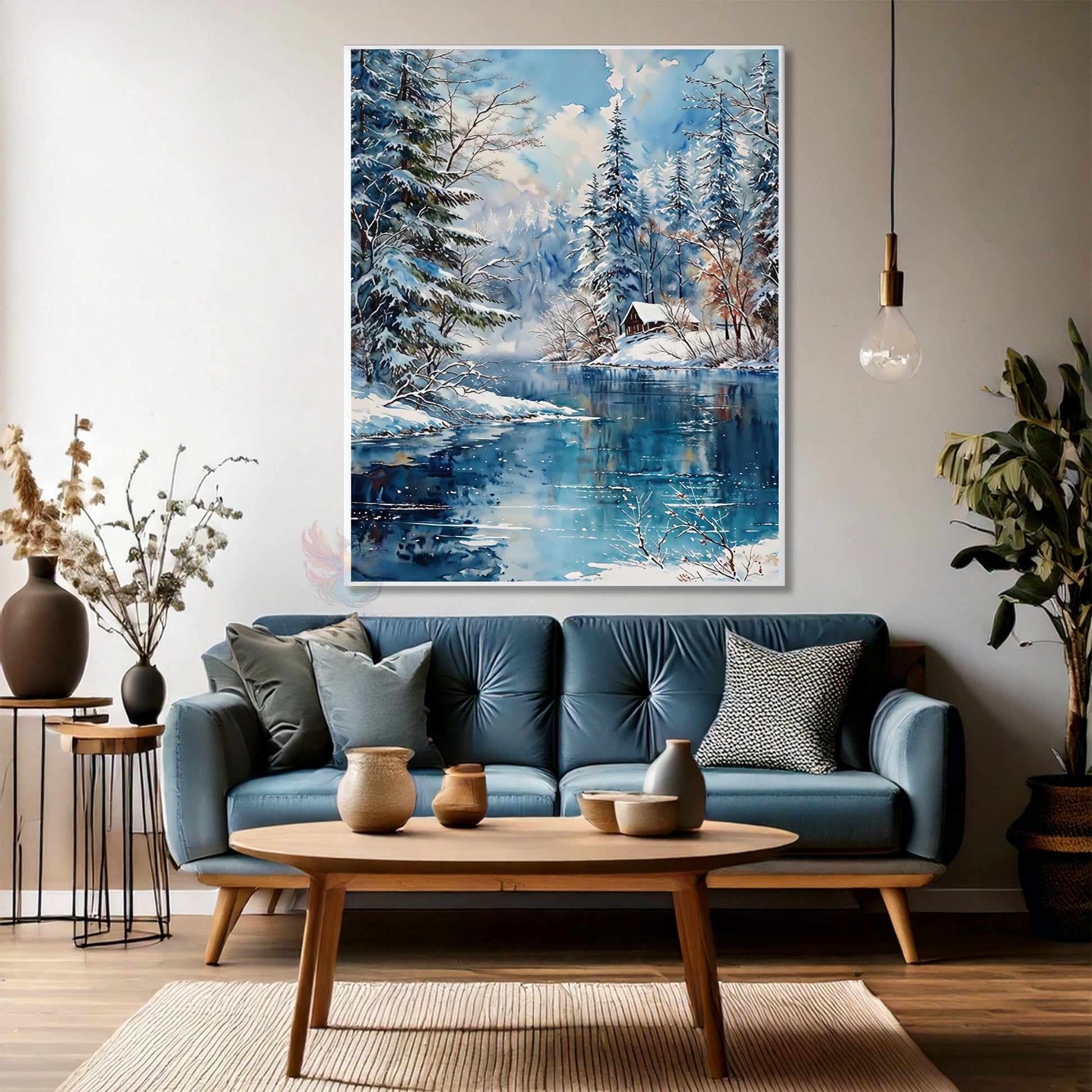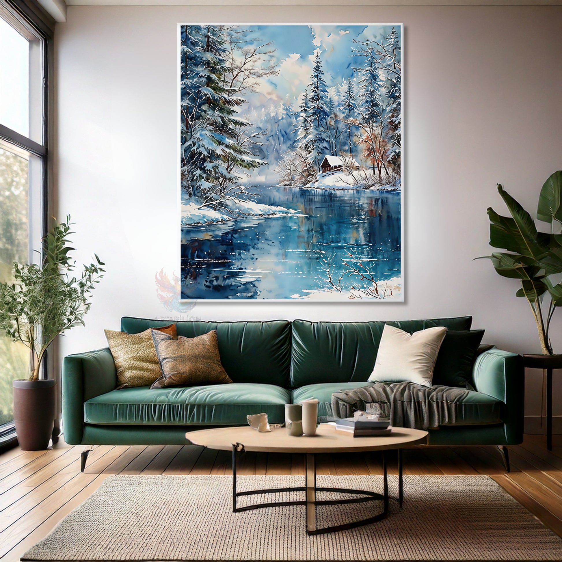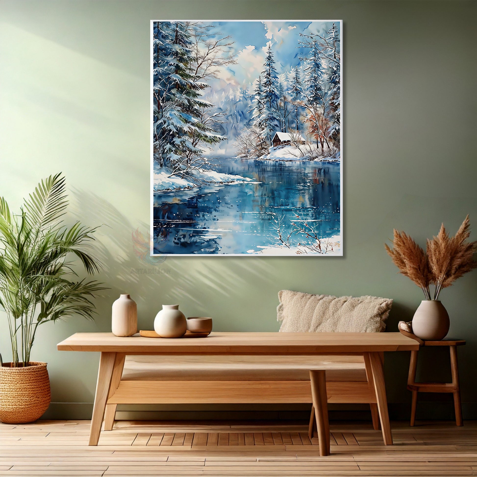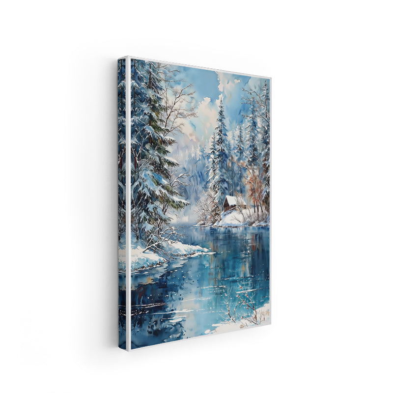 Kanvas Dikey Duvar Tablosu Kanvas Kar Göl Kulube Ev Ofis Salon Modern Duvar Tablosu